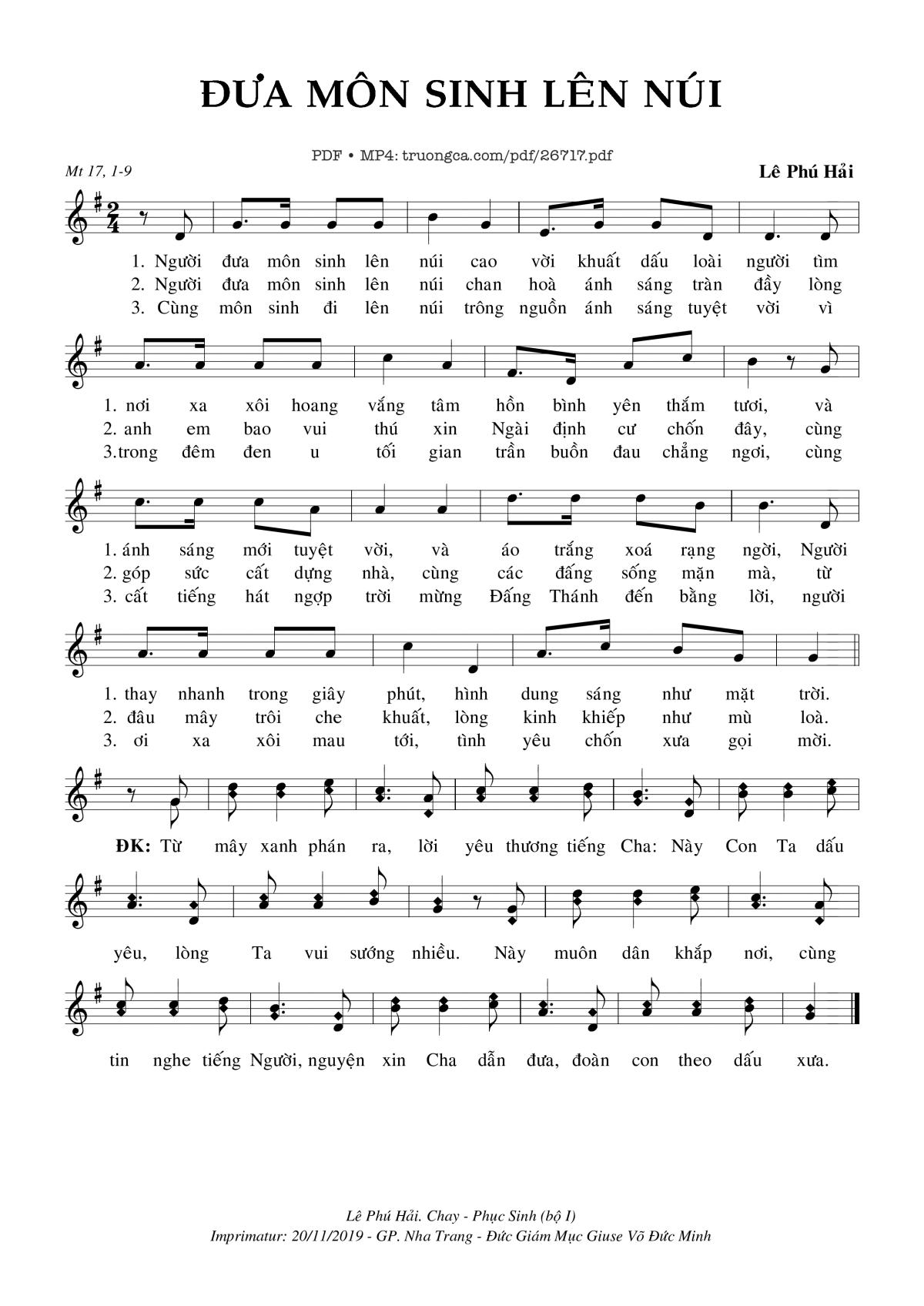 Lễ Phú Hải Người đưa môn sinh lên núi cao vời khuất dấu loài người tìm nơi xa xôi hoang vắng tâm hồn bình yên [PDF] [Sheet] [Lyrics] [Mp4/Midi]