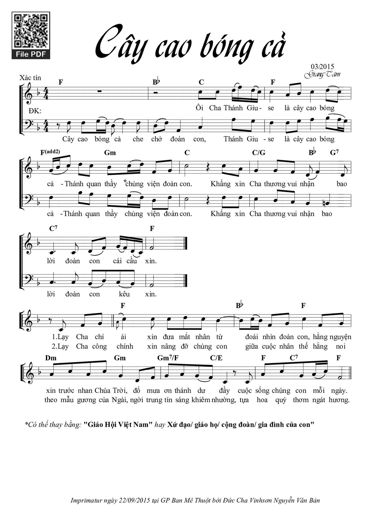 Điệp khúc: (Cây cao bóng cả che chở đoàn con) Ôi Cha Thánh Giu-se là cây cao bóng cả Thánh quan thầy *chủng viện đoàn con. Khấng xin Cha thương vui nhận bao lời đoàn con cái cầu xin.