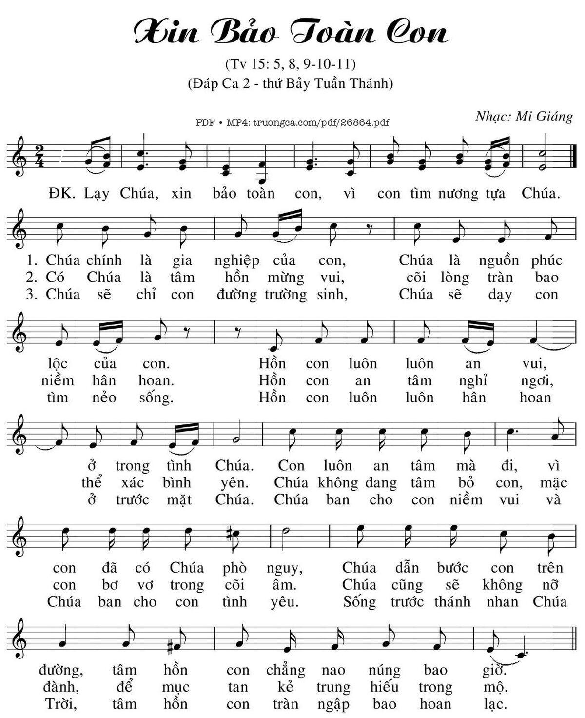 Mi Giáng Lạy Chúa xin bảo toàn con vì con tìm nương tựa Chúa [PDF] [Sheet] [Lyrics] [Mp4/Midi]