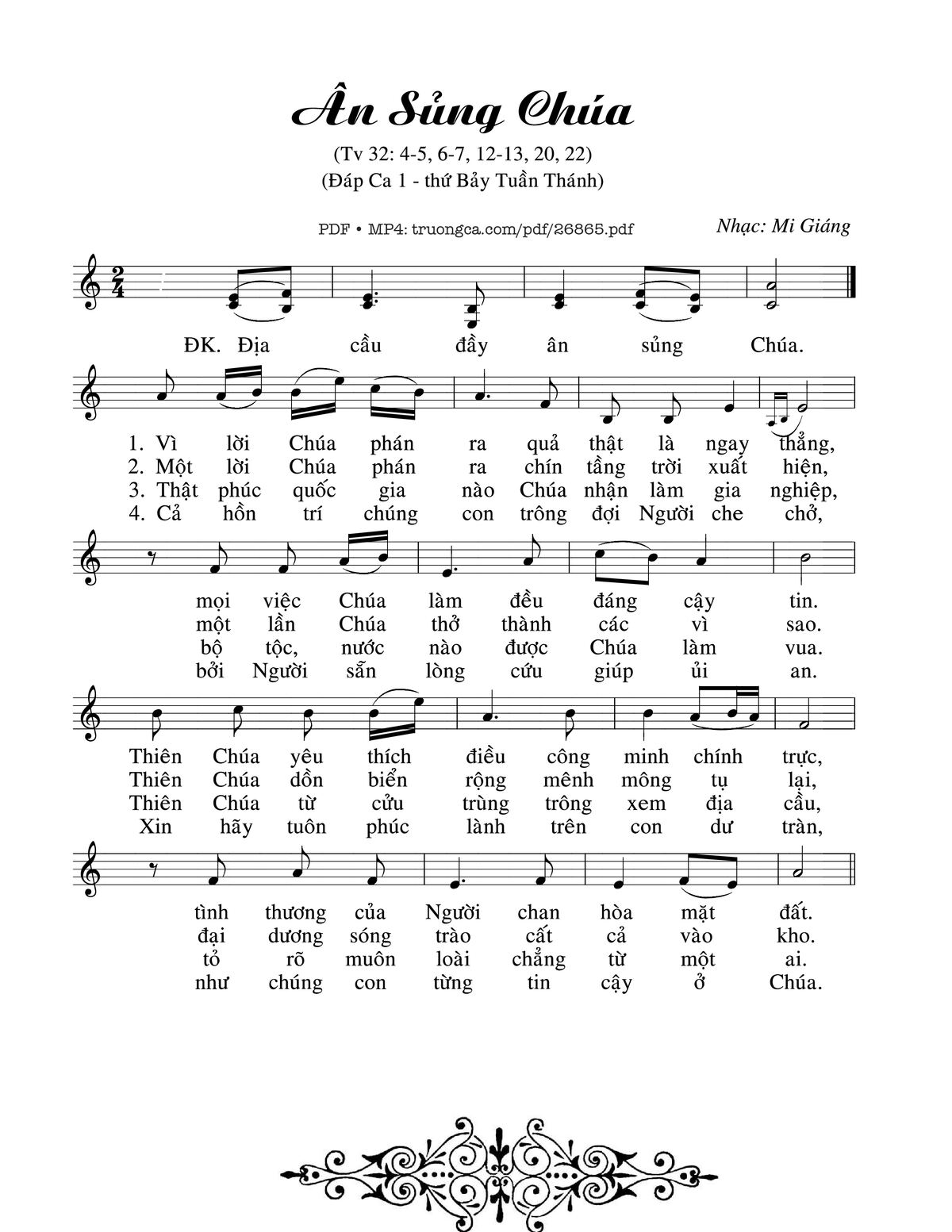 Mi Giáng Địa cầu đầy ân sủng Chúa Vì lời Chúa phán ra quả thật là ngay thẳng [PDF] [Sheet] [Lyrics] [Mp4/Midi]