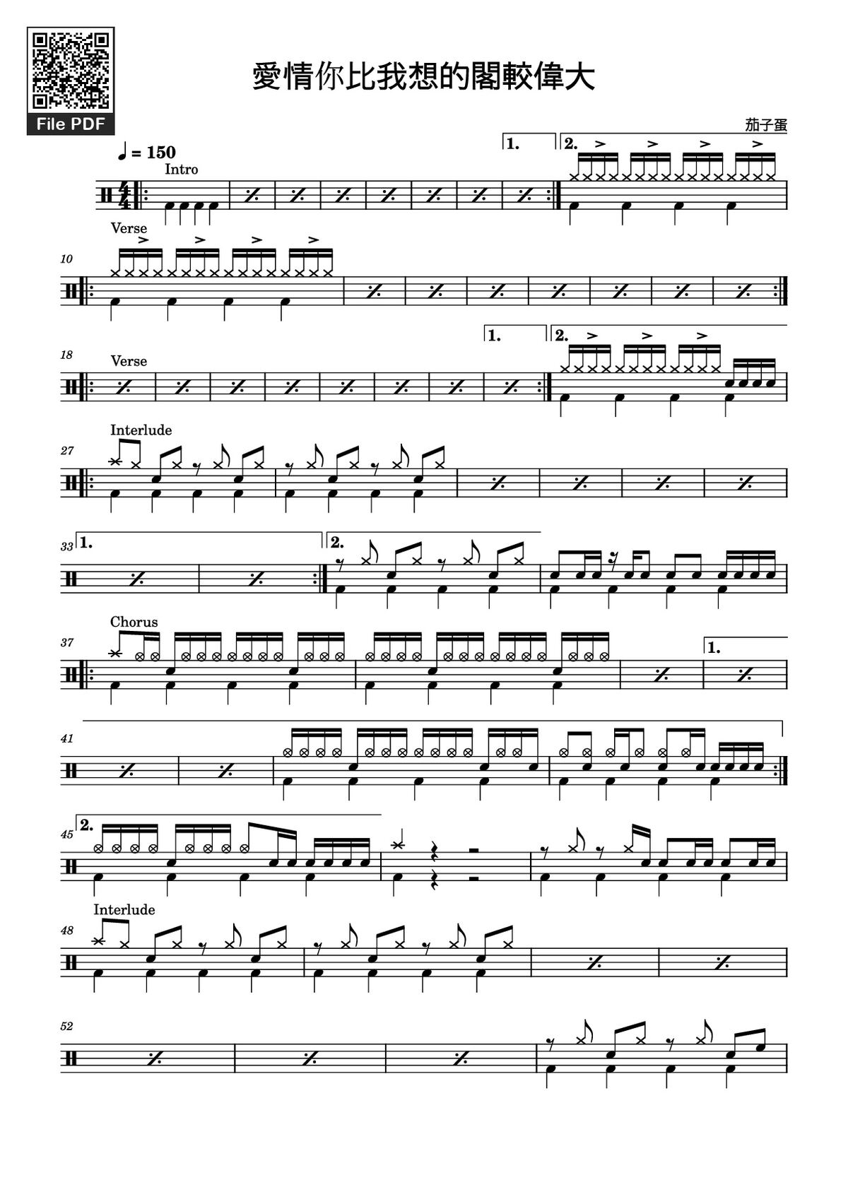 Download and print in PDF or MIDI free sheet music of 愛情你比我想的閣較偉大 - 茄子蛋 - 陳德毓 for 愛情你比我想的閣較偉大 - 茄子蛋 arranged by 陳德毓 for Drum group