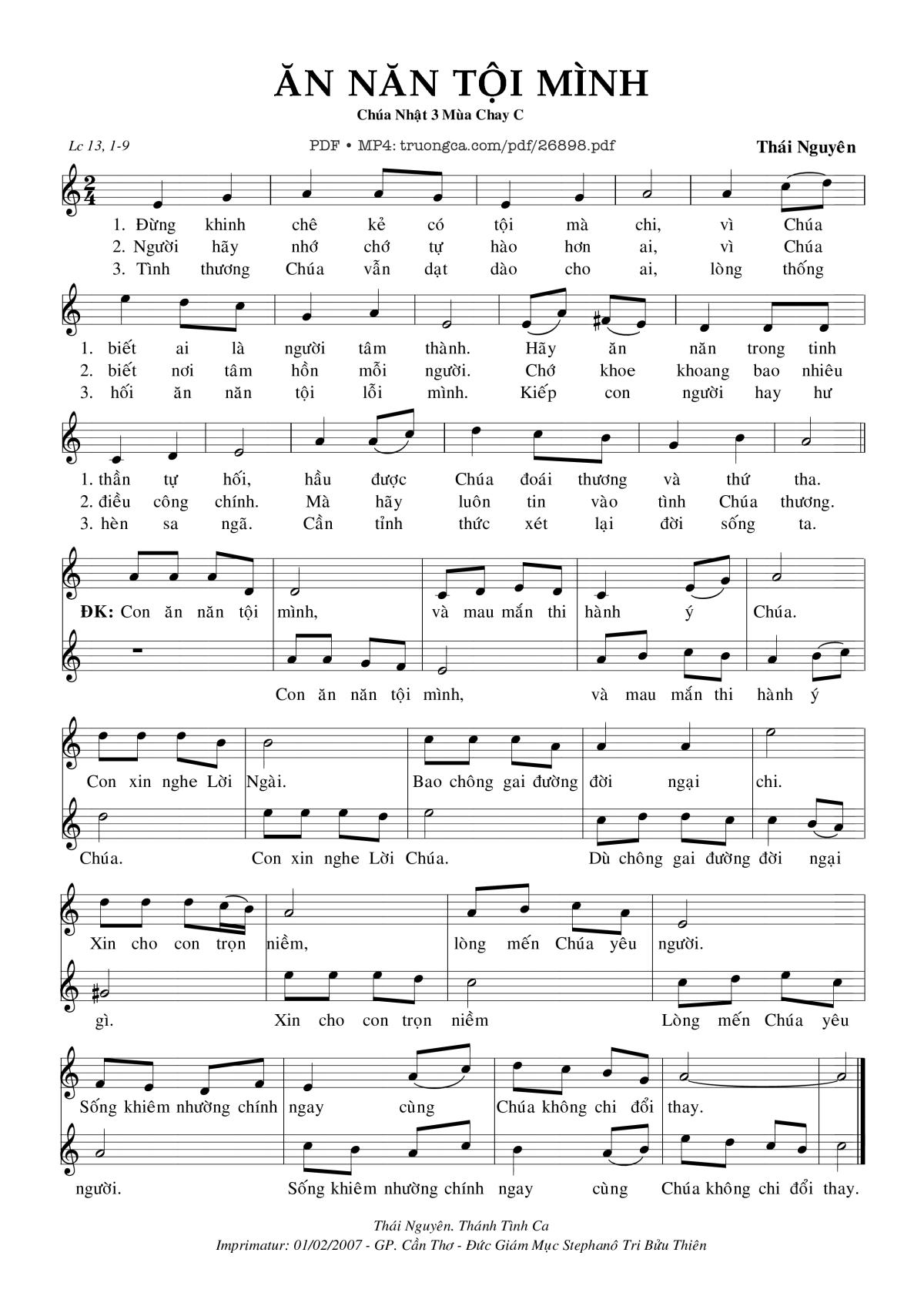 Thái Nguyên Đừng khinh chê kẻ có tội mà chi vì Chúa biết ai là người tâm thành [PDF] [Sheet] [Lyrics] [Mp4/Midi]