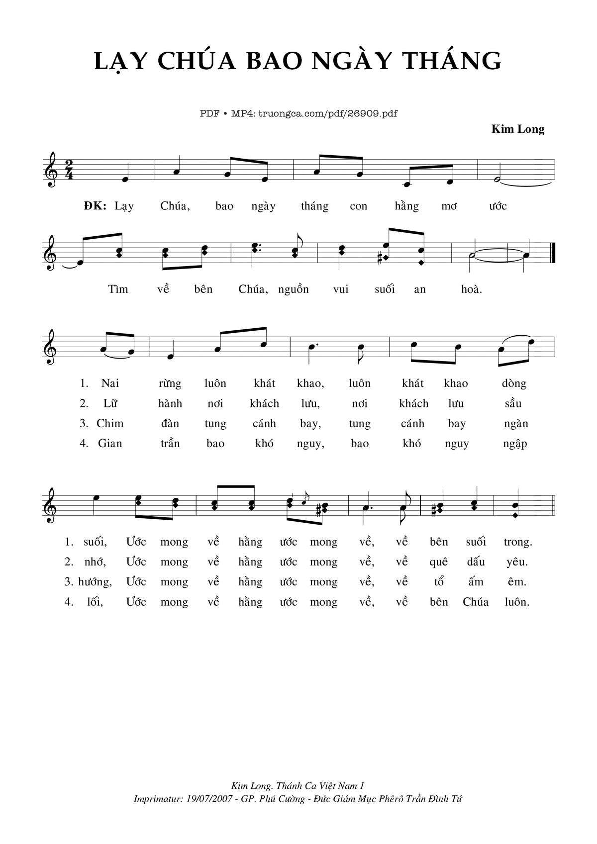 Kim Long Lạy Chúa bao ngày tháng con hằng mơ ước [PDF] [Sheet] [Lyrics] [Mp4/Midi]