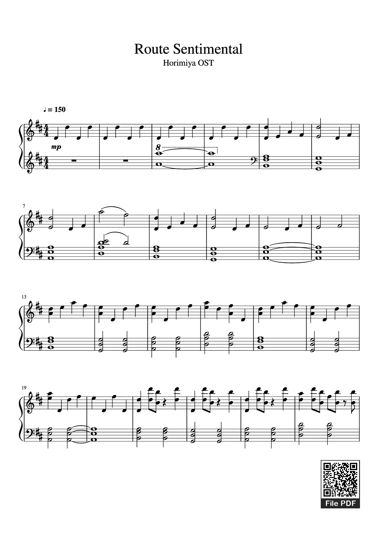 Download and print in PDF or MIDI free sheet music of Route sentimental - Horimiya OST - hou for Route sentimental - Horimiya OST arranged by hou for Piano (Solo)