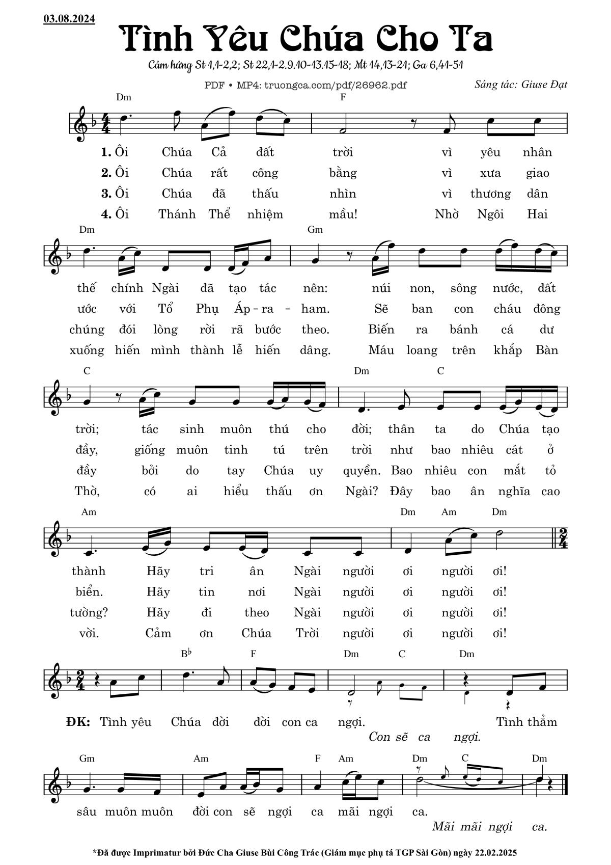 🌾 Imprimatur, Thông tin chuẩn nhận dùng trong phụng vụ Công Giáo: Ca Nguyện – Hiệp Lễ. Imprimatur – Tgp. Sài Gòn:22.02.2025
