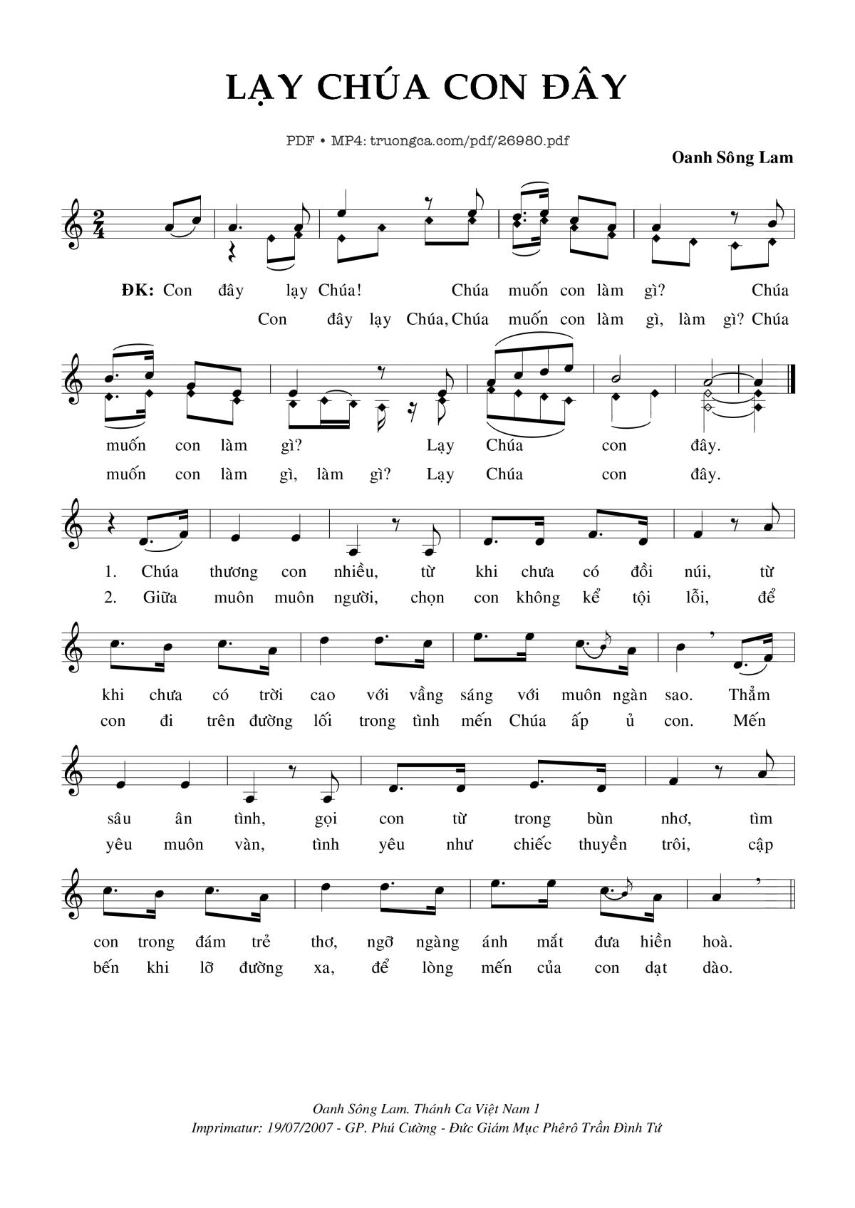Oanh Sông Lam Con đây lạy Chúa Chúa muốn con làm gì Chúa muốn con làm gì [PDF] [Sheet] [Lyrics] [Mp4/Midi]