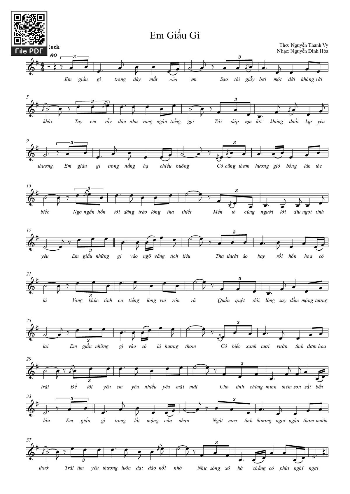 Nguyễn Đình Hòa Em giấu gì trong đáy mắt của em Sao tôi giẫy bơi một đời không rời khỏi [PDF] [Sheet] [Lyrics] [Mp4/Midi]