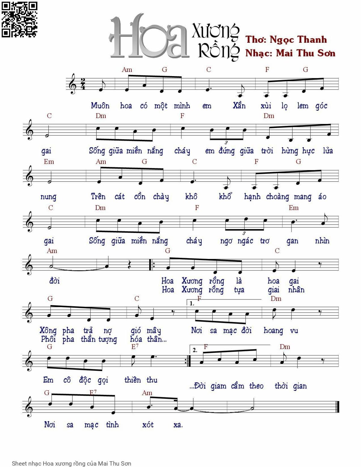 Transposition is the process of moving a song's melody and chords up or down in pitch by a constant interval. The direction of the transposition tool is indicated by a plus (+) sign for up and a minus (-) sign for down. Hover mouse over chords signs to see the chords chart of Hoa xương rồng song.