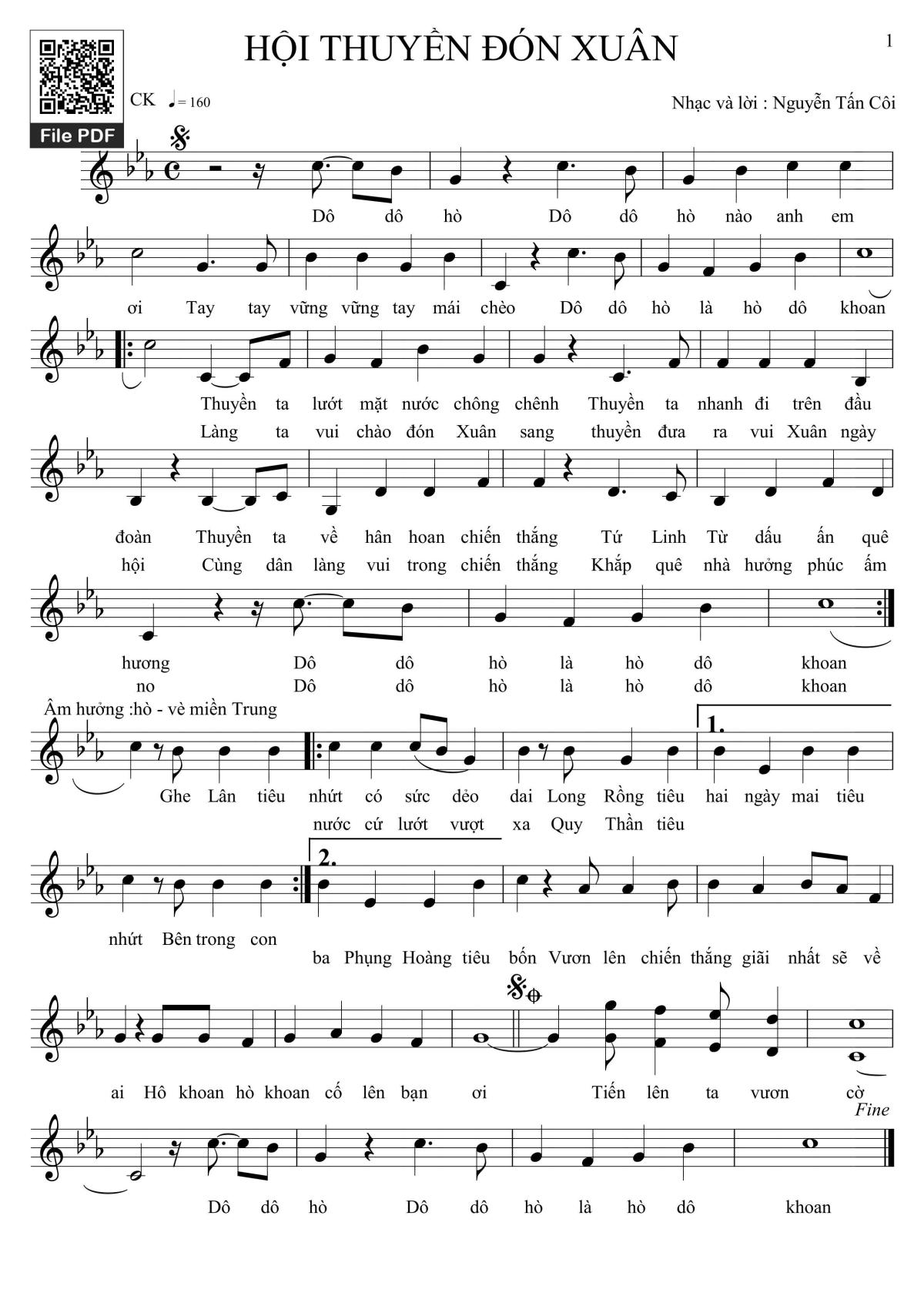 Nguyễn Tấn Côi Dô dô hò dô dô hò nào anh em ơi Tay tay vững vững tay mái chèo [PDF] [Sheet] [Lyrics] [Mp4/Midi]