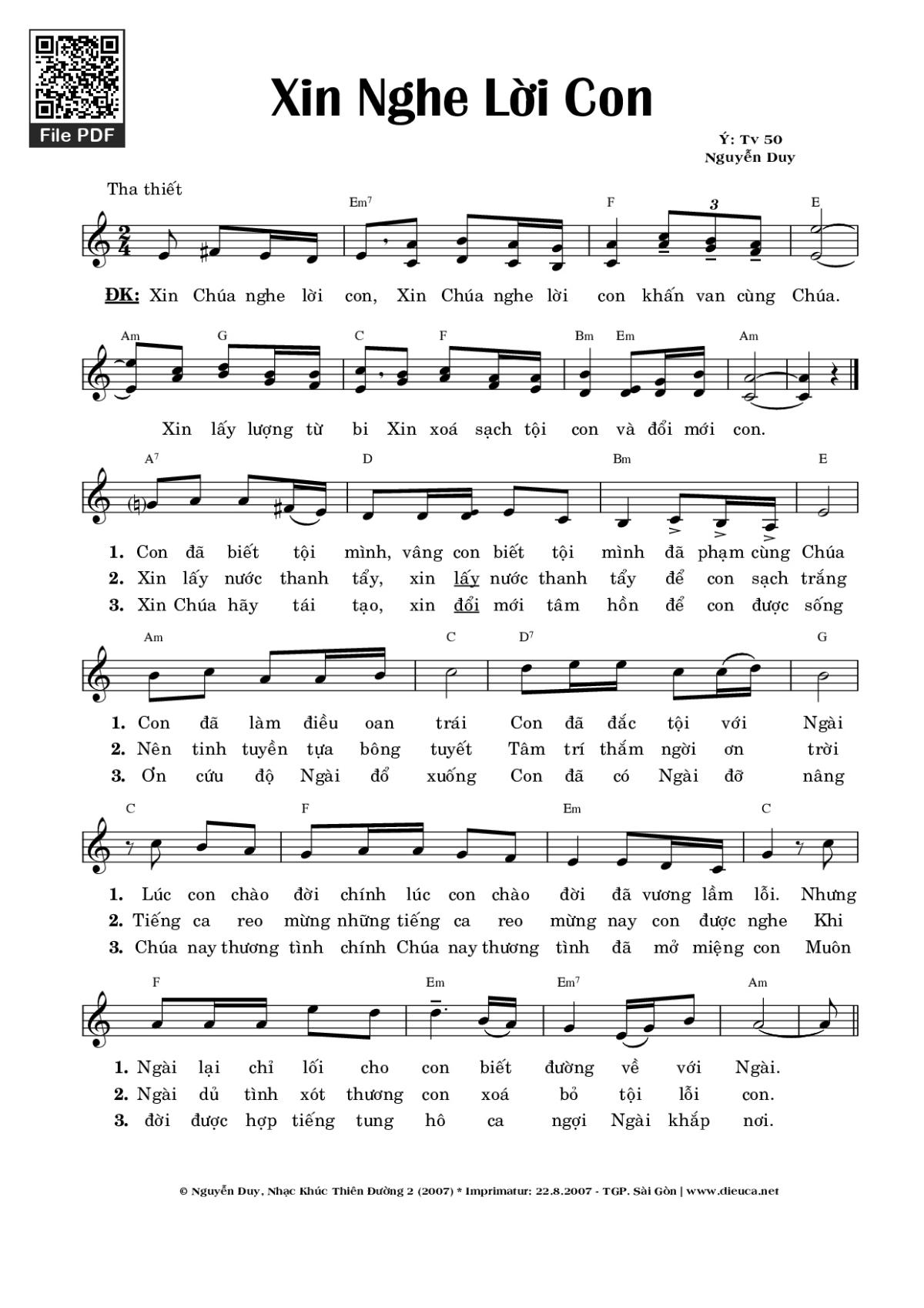 Điệp khúc: Xin Chúa nghe lời con, Xin Chúa nghe lời con khấn van cùng Chúa.