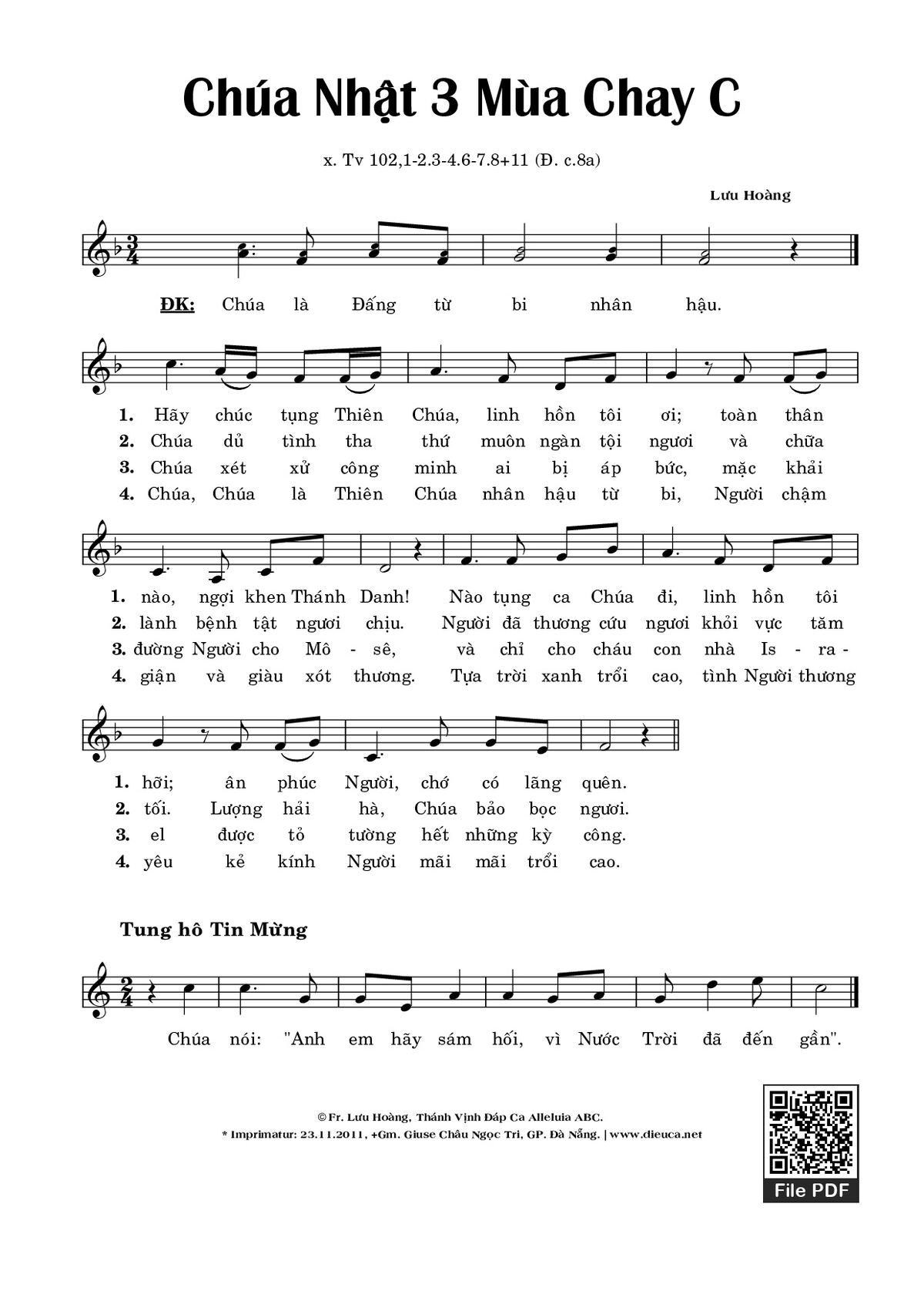 Category 🌾 Nhạc Thánh Ca, 🌾 Thánh Vịnh - Đáp Ca, 🌾 Thánh ca Imprimatur, ⛪ Chúa Nhật 3 Mùa Chay C, 🌾 Thánh Vịnh 102