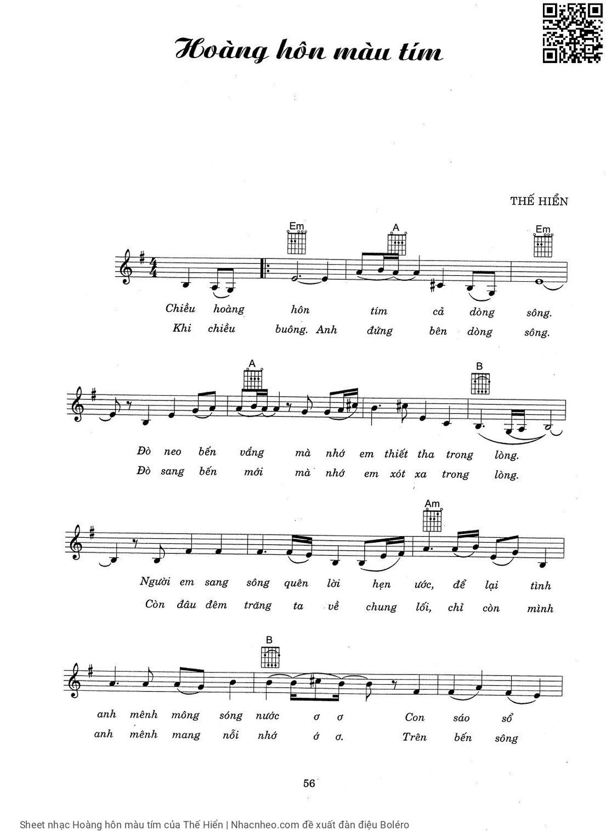 Thế Hiển Chiều hoàng hôn tím cả dòng sông Đò neo bến vắng mà nhớ anh thiết tha trong lòng [PDF] [Sheet] [Lyrics] [Mp4/Midi]