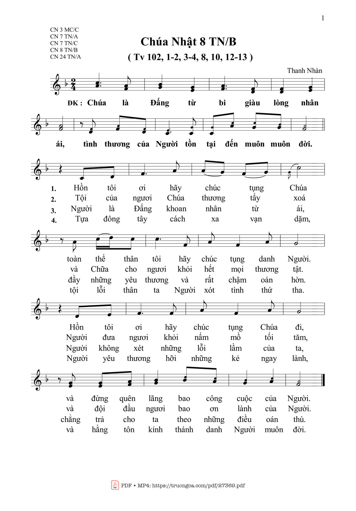 More similar sheets PDF Thánh Vịnh 102, Chúa Nhật 8B Thường Niên: