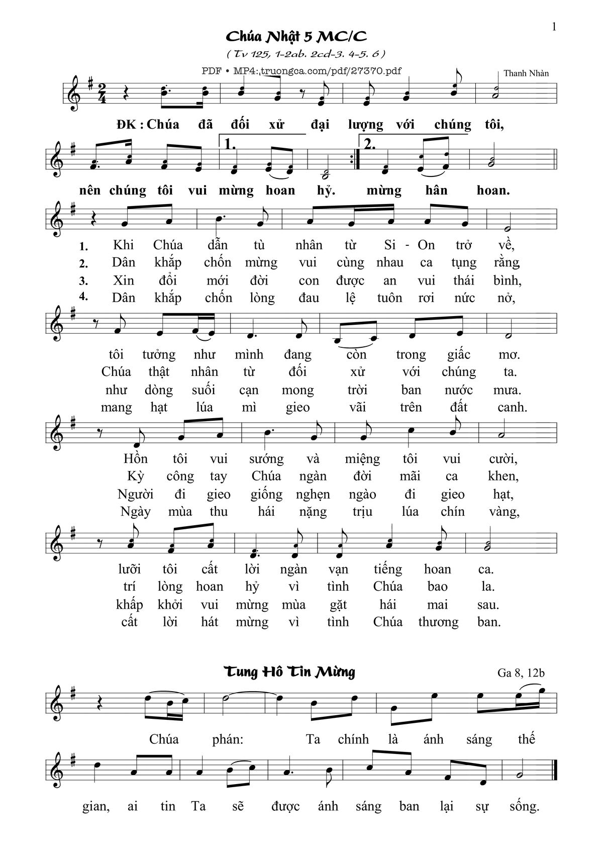 More similar sheets PDF Thánh Vịnh 125, Chúa Nhật 5C Mùa Chay: