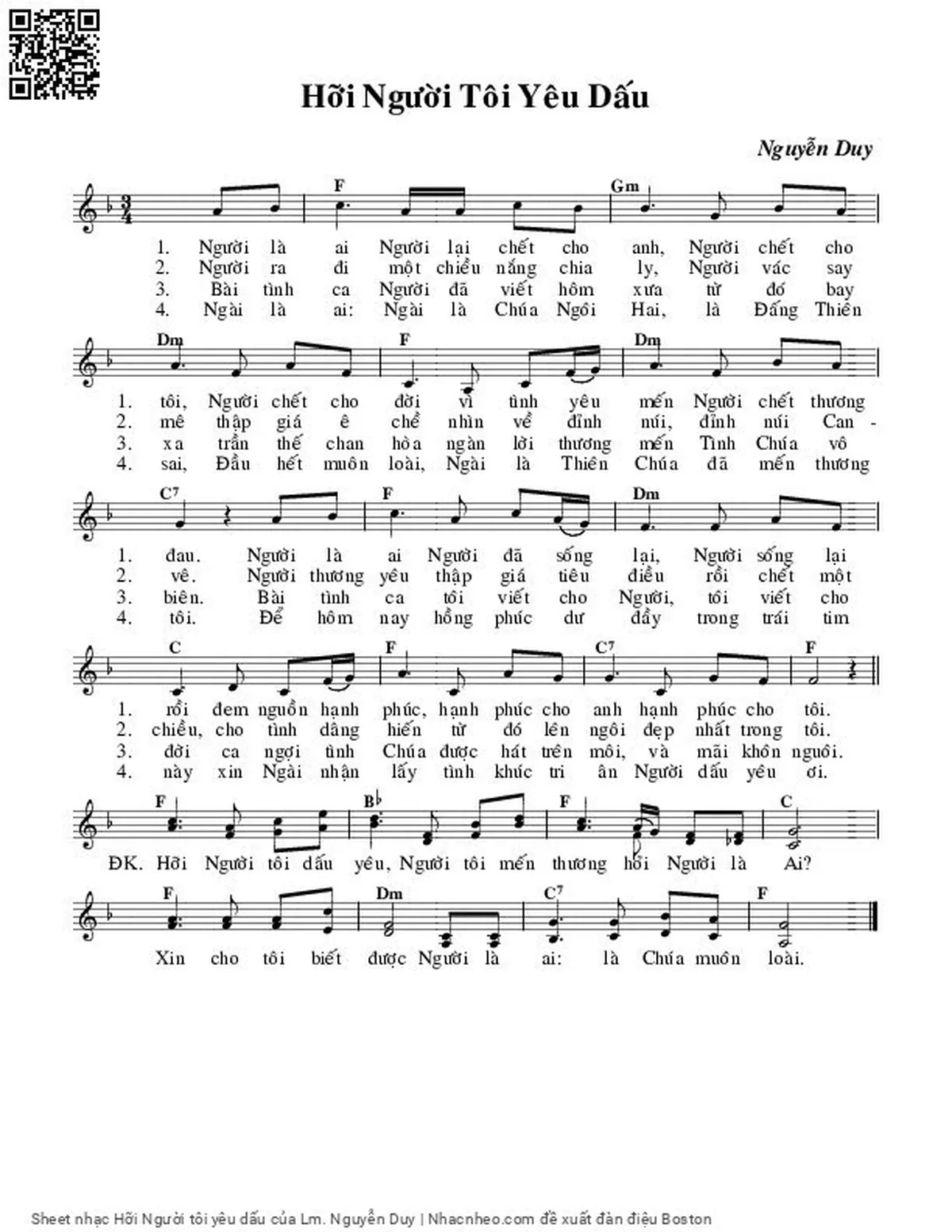 Lm. Nguyễn Duy Người là ai Người lại chết cho anh [PDF] [Sheet] [Lyrics] [Mp4/Midi]
