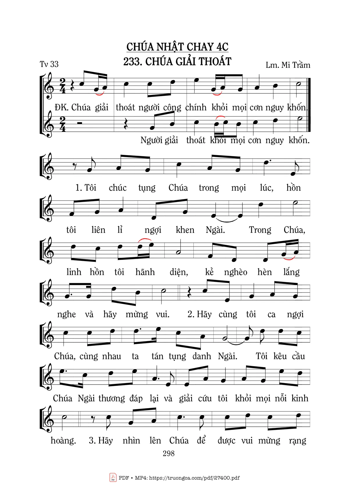 The Videos/audios Thánh Vịnh 33, Chúa Giải Thoát by Mi Trầm were embed from Youtube, Musescore or the other 3rd links. Videos are subject to 3rd's copyright control and may be removed by YouTube's copyright rules and 3rd's policies or maybe included advertisements. If you cannot access to these songs, this mean that have been removed.