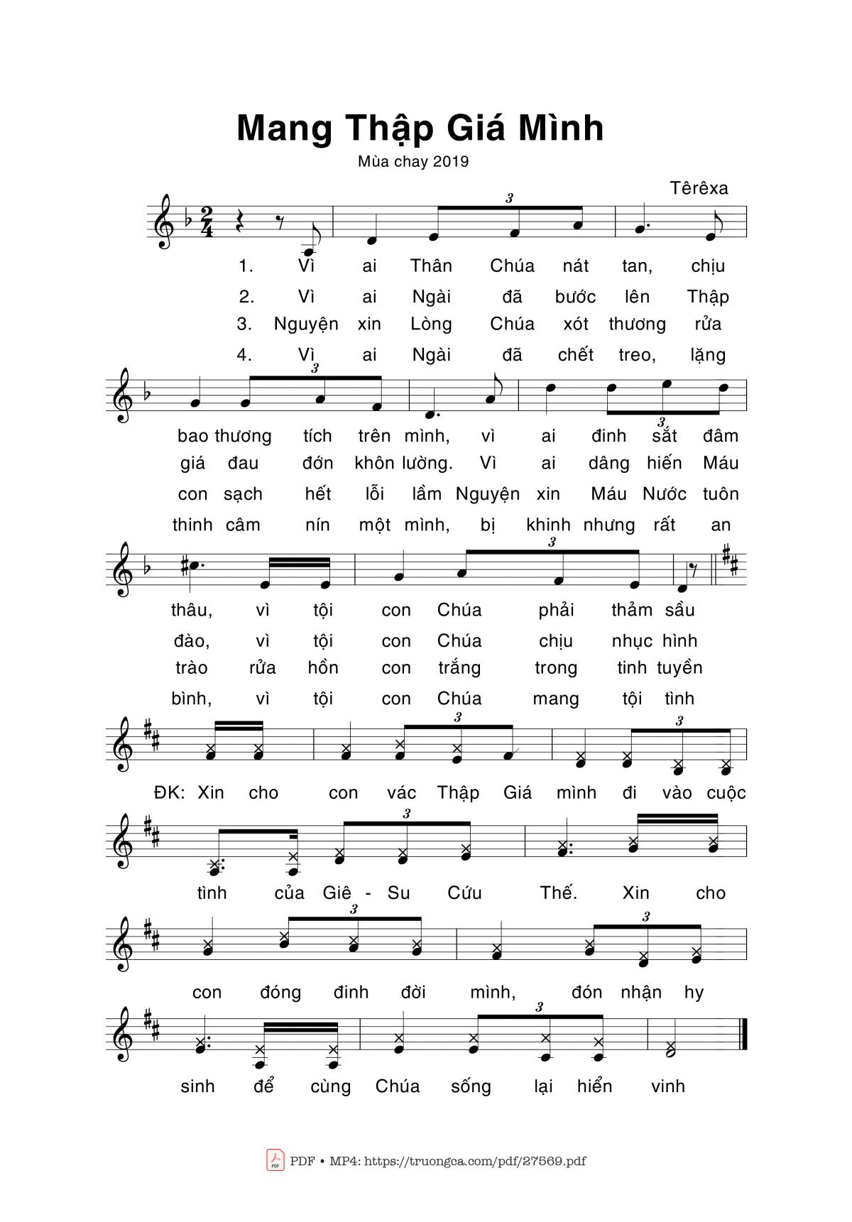 Têrêsa Vì ai Thân Chúa nát tan chịu bao thương tích trên mình [PDF] [Sheet] [Lyrics] [Mp4/Midi]