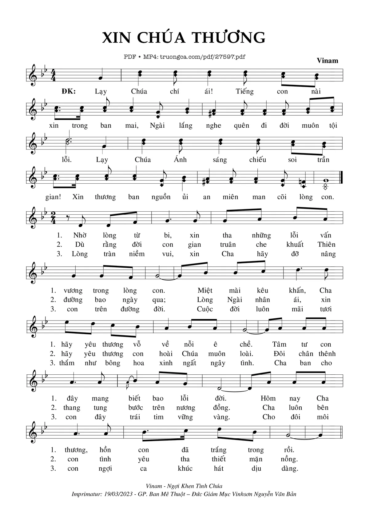 Vinam Lạy Chúa chí ái Tiếng con nài xin trong ban mai [PDF] [Sheet] [Lyrics] [Mp4/Midi]