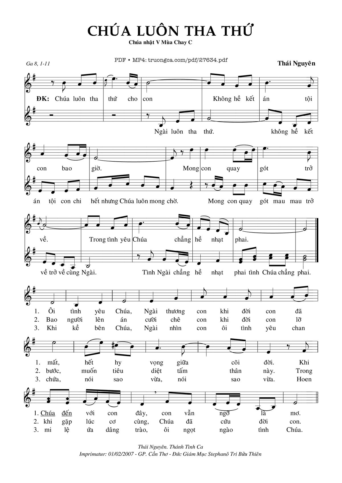 Thái Nguyên Chúa luôn tha thứ cho con không hề kết án tội con bao giờ [PDF] [Sheet] [Lyrics] [Mp4/Midi]