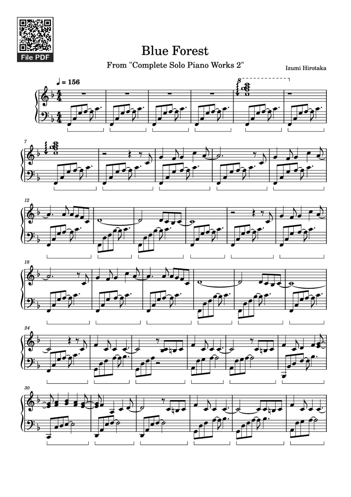 The Videos/audios Blue Forest Piano by Izumi Hirotaka were embed from Youtube, Musescore or the other 3rd links. Videos are subject to 3rd's copyright control and may be removed by YouTube's copyright rules and 3rd's policies or maybe included advertisements. If you cannot access to these videos/audios, this mean that have been removed.