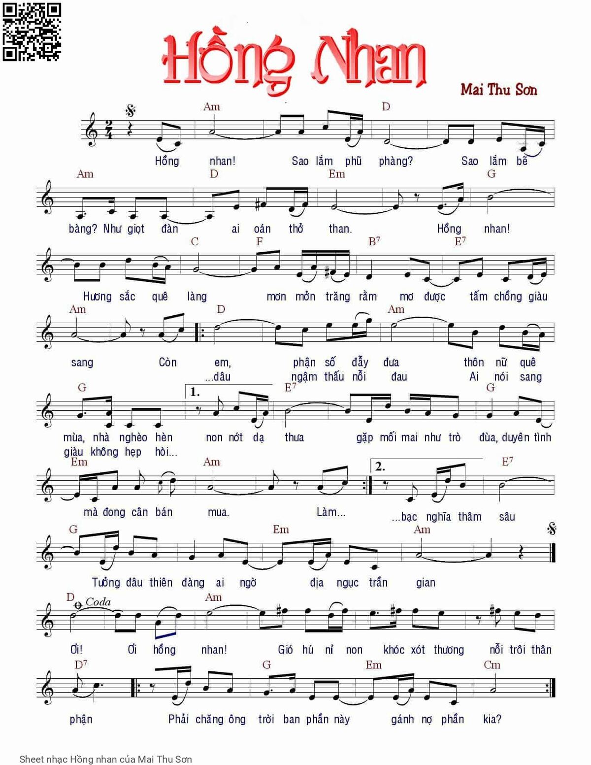 Mai Thu Sơn Hồng nhan Sao lắm phủ phàng Sao lắm bẻ bàng như giọt đàn ai oán thở than [PDF] [Sheet] [Lyrics] [Mp4/Midi] [Story and comment]