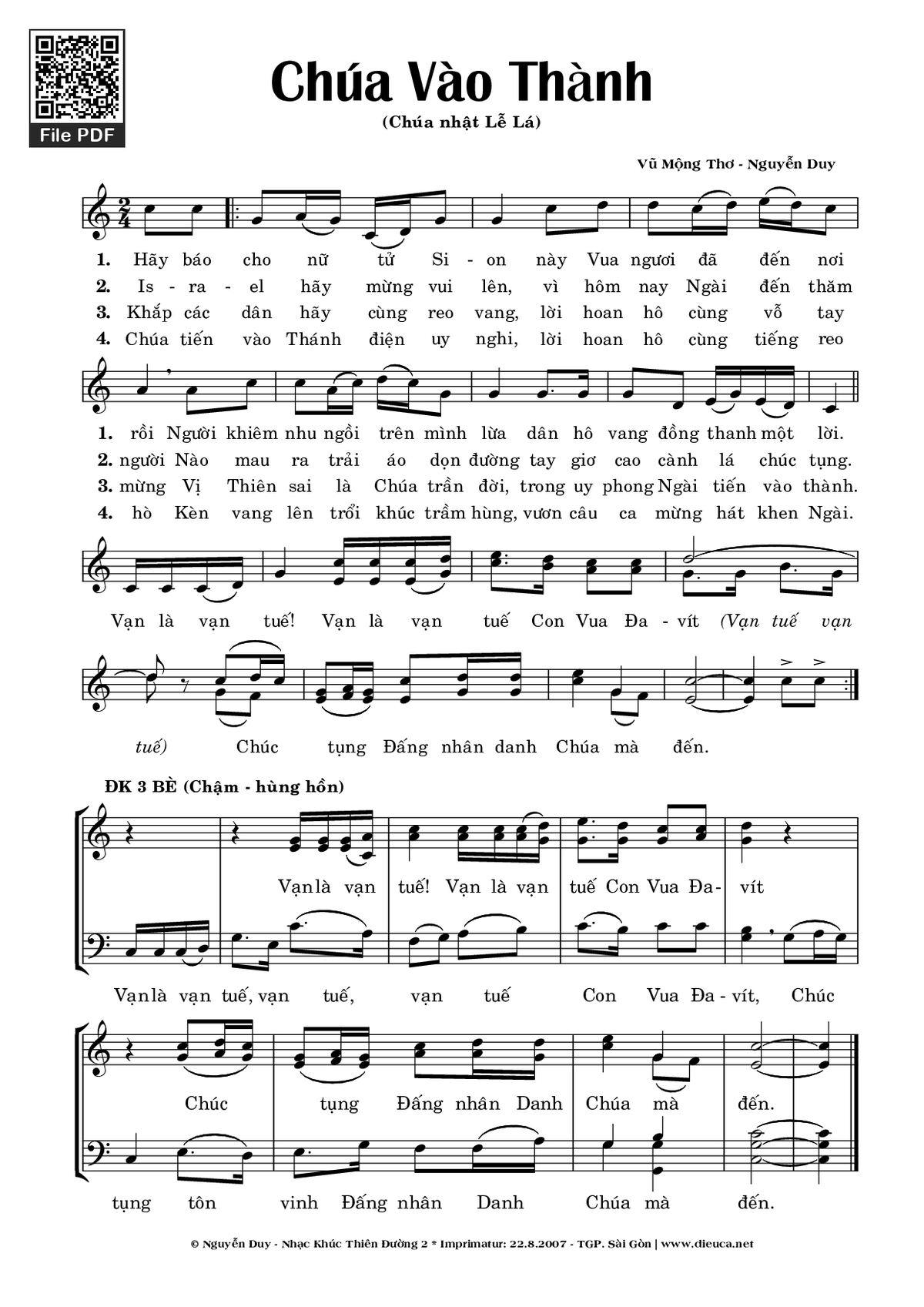 Sheet PDF with the same name Chúa Vào Thành (Bè):