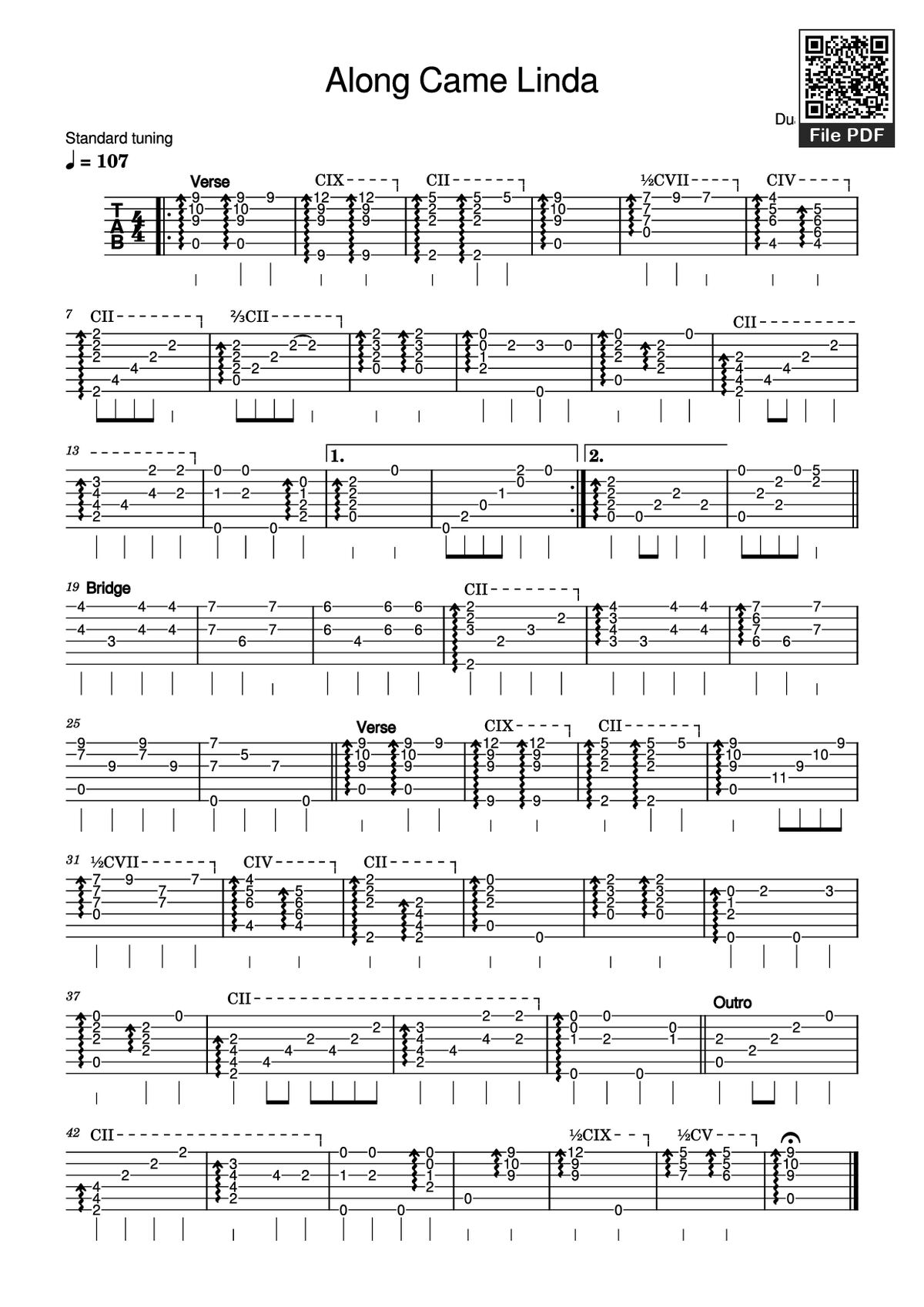 More similar sheets PDF Along Came Linda Guitar TAB: