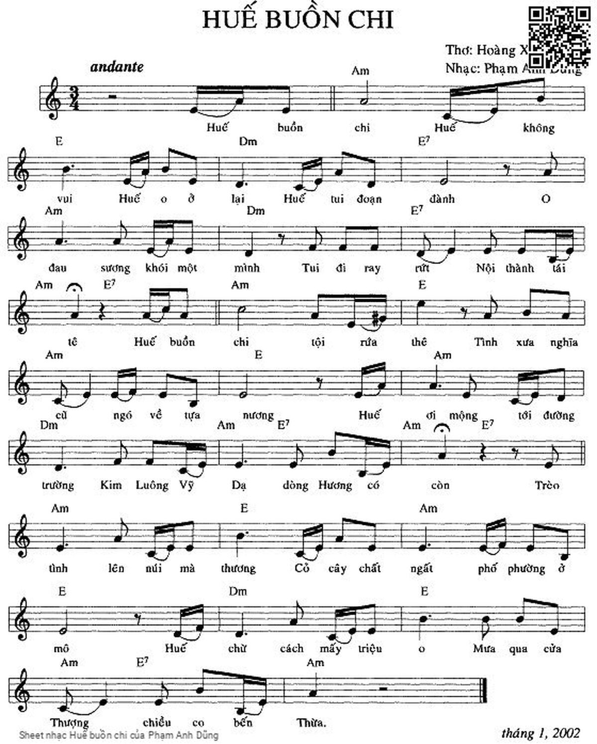 Transposition is the process of moving a song's melody and chords up or down in pitch by a constant interval. The direction of the transposition tool is indicated by a plus (+) sign for up and a minus (-) sign for down. Hover mouse over chords signs to see the chords chart of Huế buồn chi song.