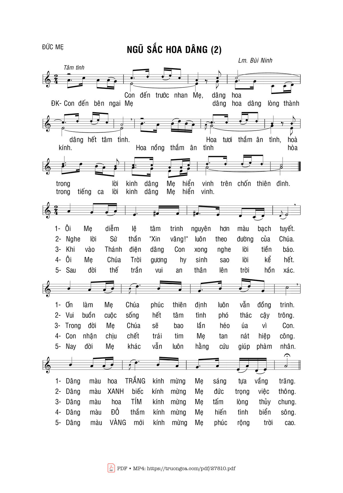 Bùi Ninh Dâng Hoa Đức Mẹ Con đến bên ngai Mẹ dâng hoa [PDF] [Sheet] [Lyrics] [Mp4/Midi]