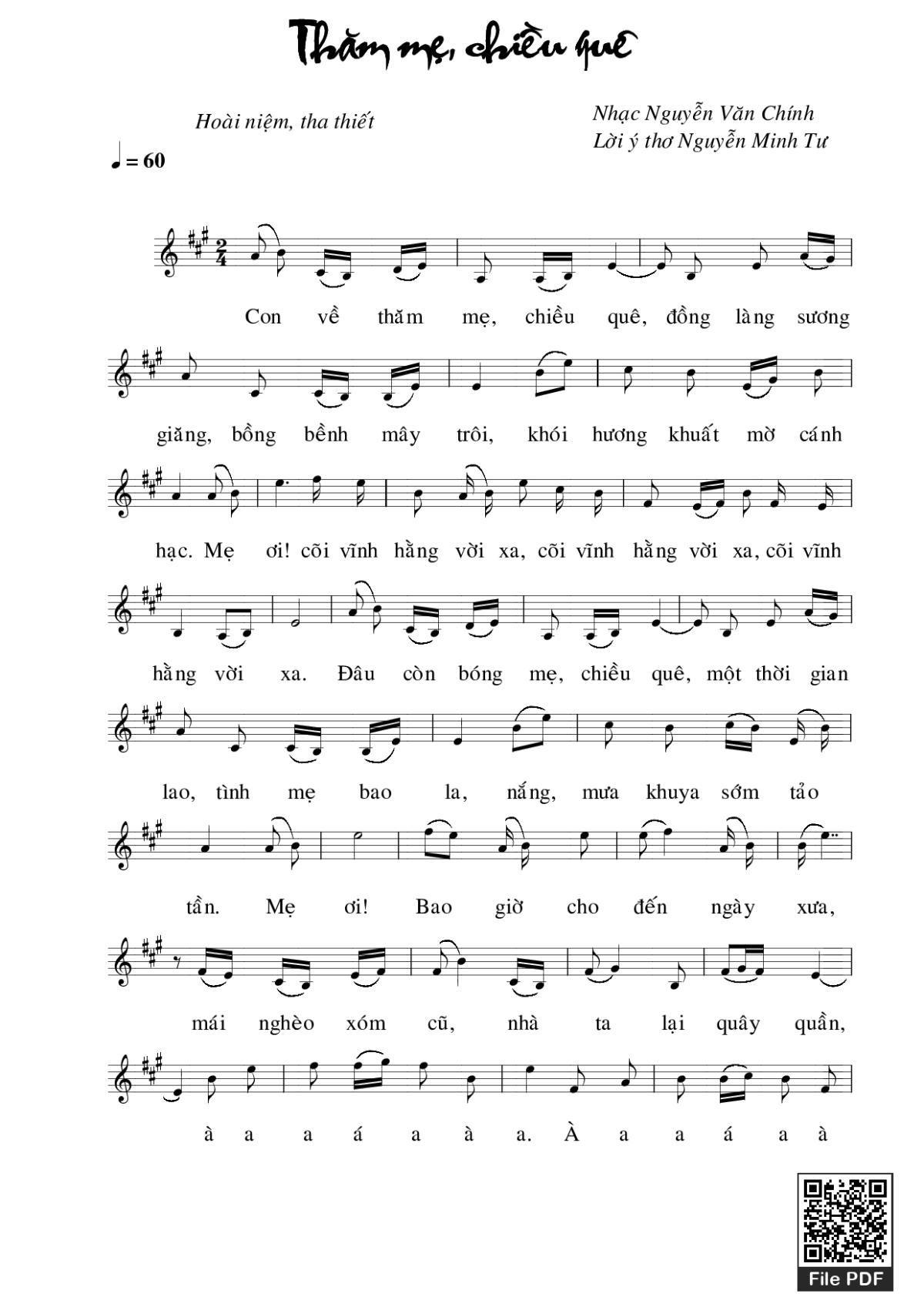 Nguyễn Văn Chính Con về thăm mẹ chiều quê Đồng làng sương giăng bồng bềnh mây trôi [PDF] [Sheet] [Lyrics] [Mp4/Midi]