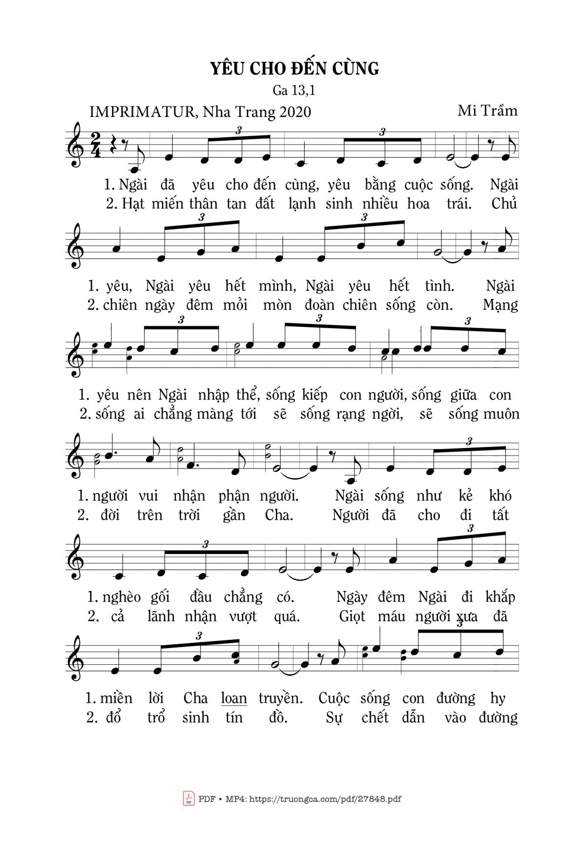 Mi Trầm Ngài đã yêu cho đến cùng yêu bằng cuộc sống [PDF] [Sheet] [Lyrics] [Mp4/Midi]