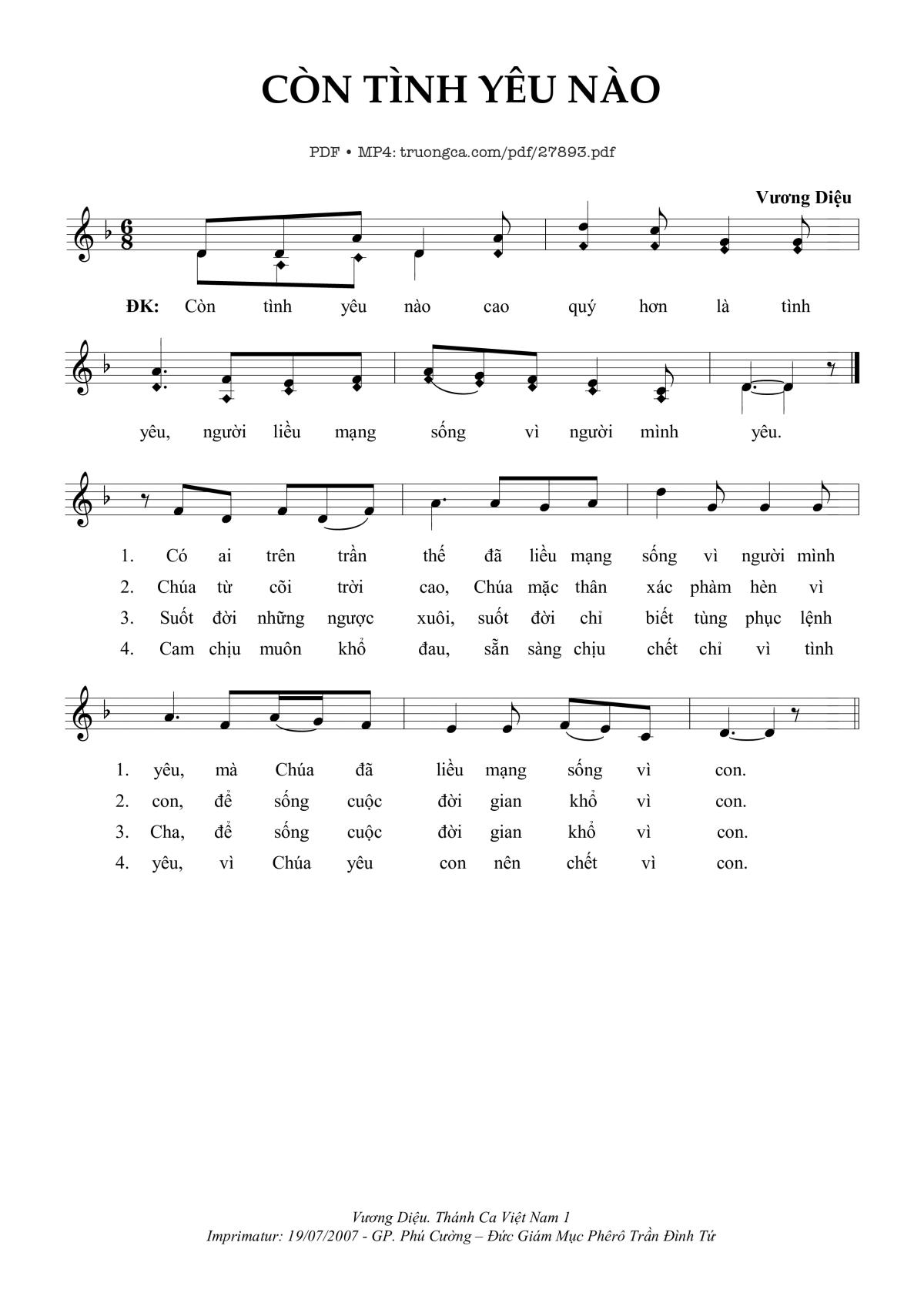 Vương Diệu Ca Nguyện Hiệp Lễ Thánh Ca Việt Nam I Còn tình yêu nào cao quý hơn là tình yêu [PDF] [Sheet] [Lyrics] [Mp4/Midi]