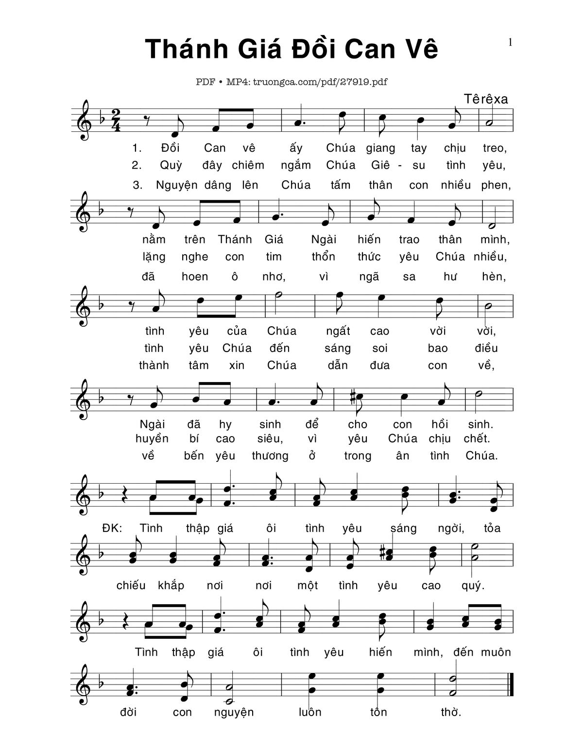 Têrêsa Đồi Canvê ấy Chúa giang tay chịu treo Nằm trên Thánh Giá [PDF] [Sheet] [Lyrics] [Mp4/Midi]