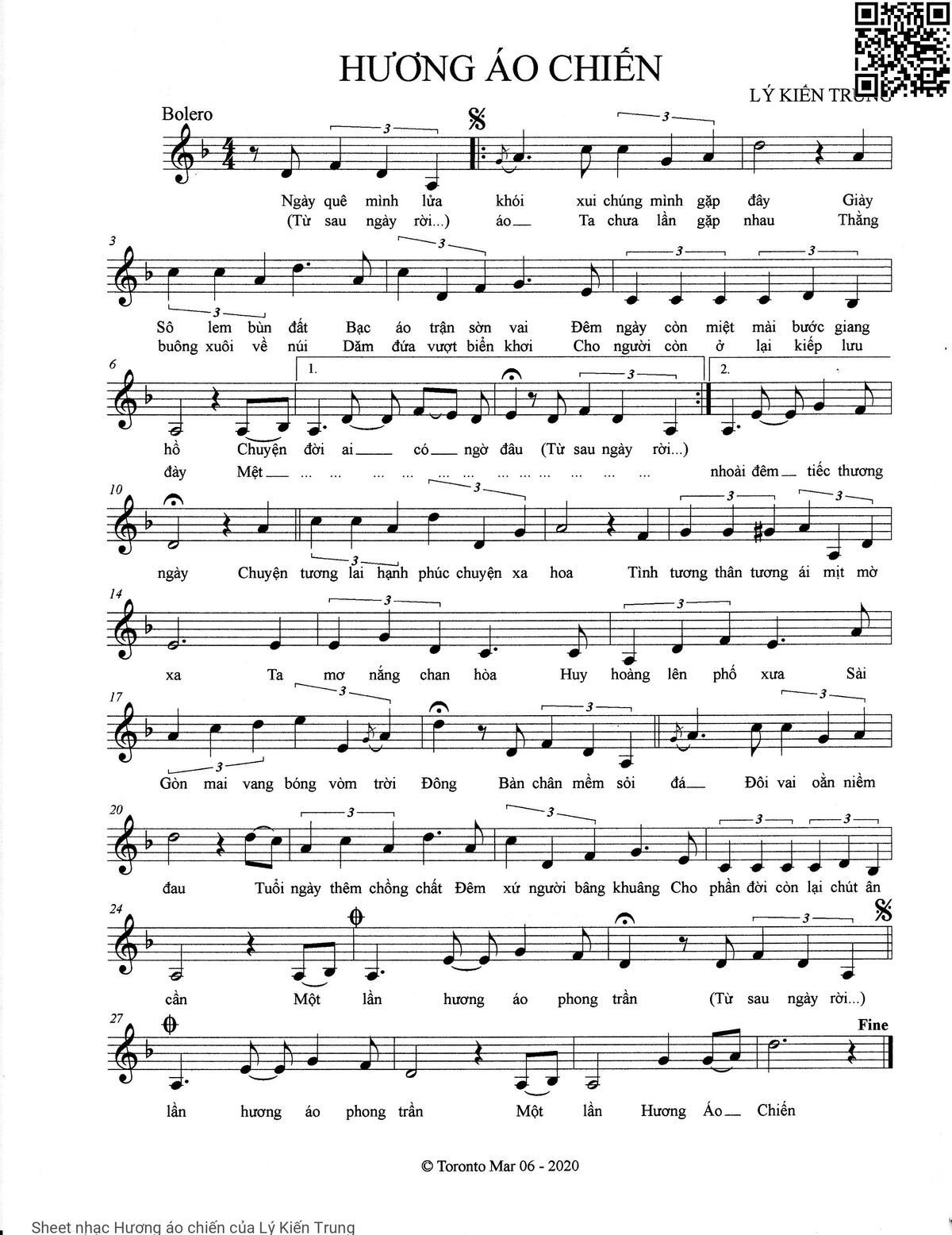 Lý Kiến Trung Ngày quê mình lửa khói xui chúng mình gặp đây [PDF] [Sheet] [Lyrics] [Mp4/Midi]