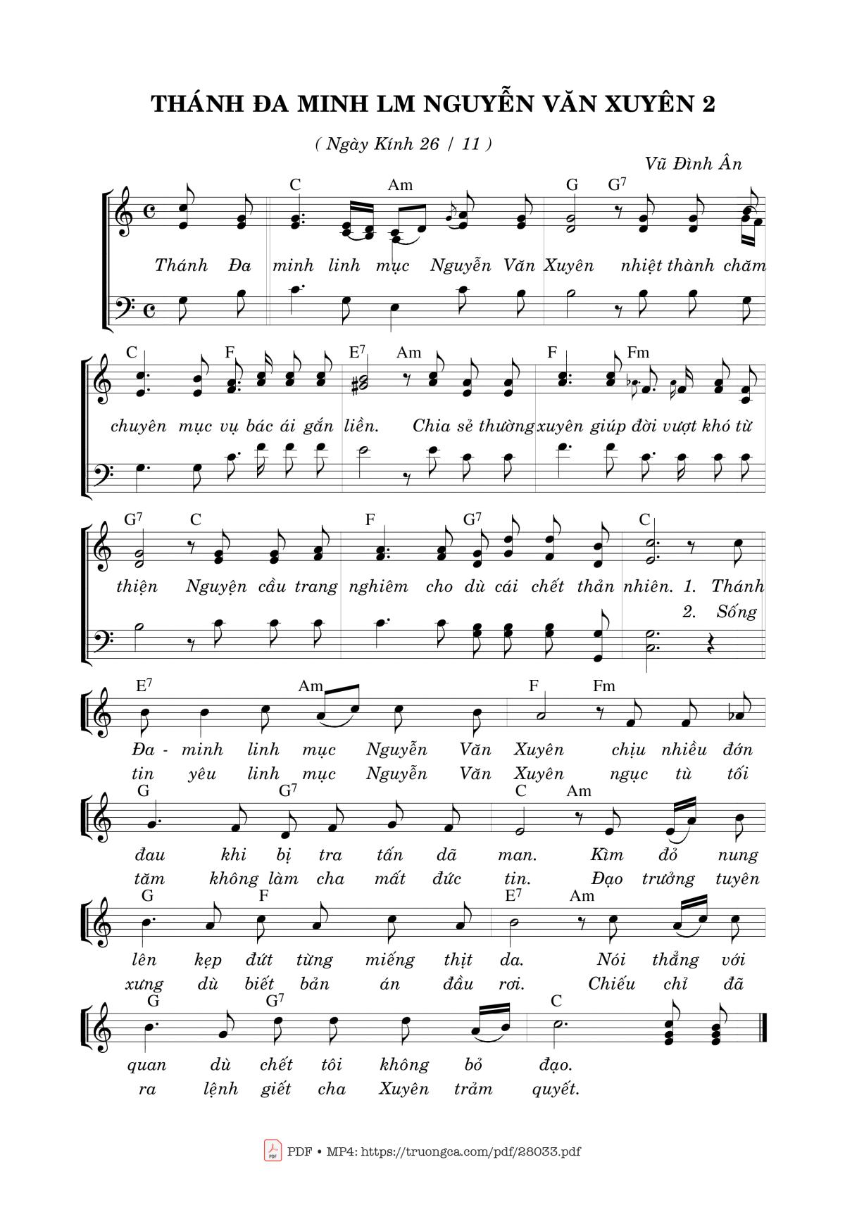 Vũ Đình Ân Thánh Đaminh Linh mục Nguyễn Văn Xuyên nhiệt thành chăm chuyên mục vụ bác ái gắn liền [PDF] [Sheet] [Lyrics] [Mp4/Midi]