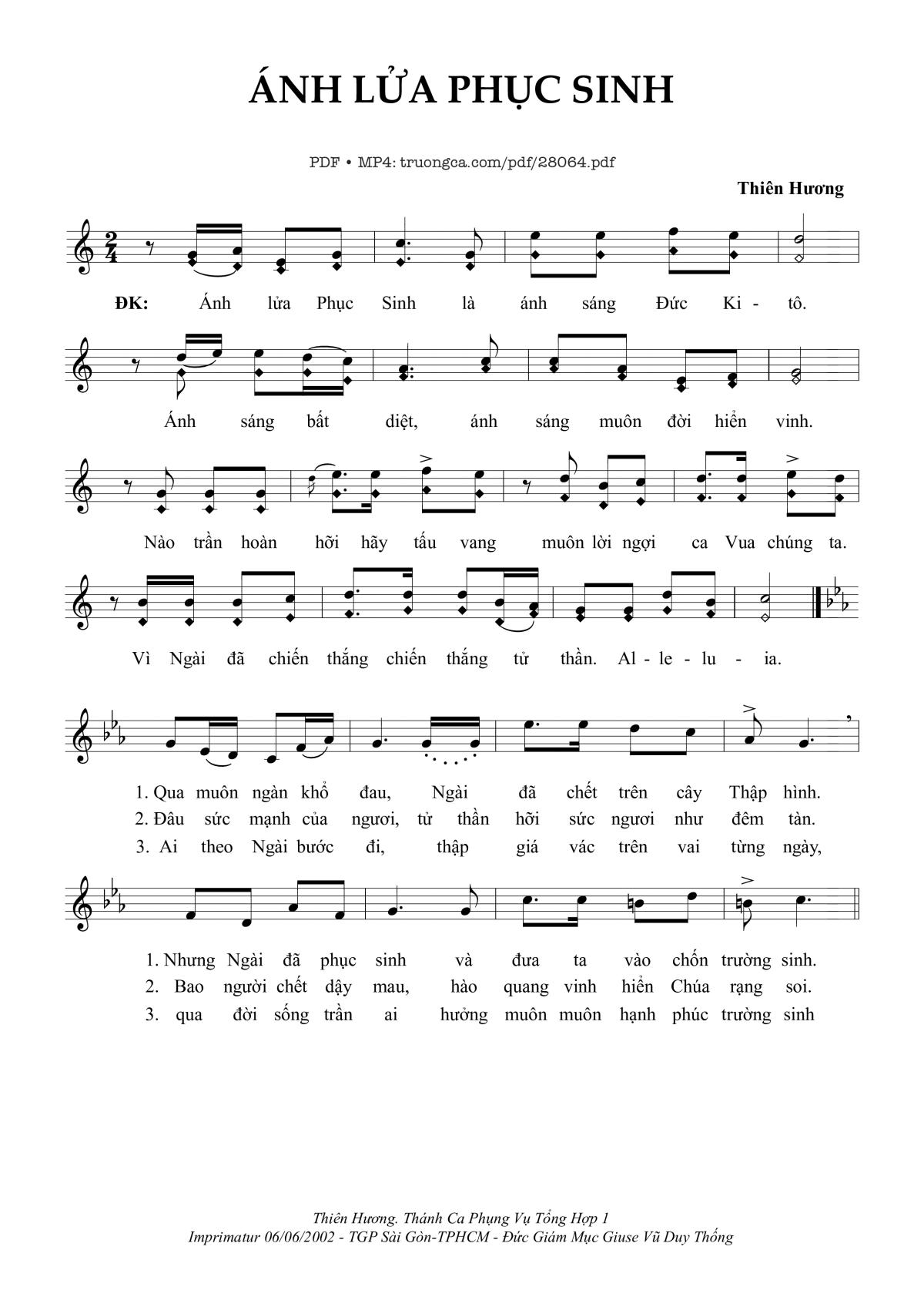 Thiên Hương Ánh lửa Phục Sinh là ánh sáng Đức Kitô [PDF] [Sheet] [Lyrics] [Mp4/Midi]