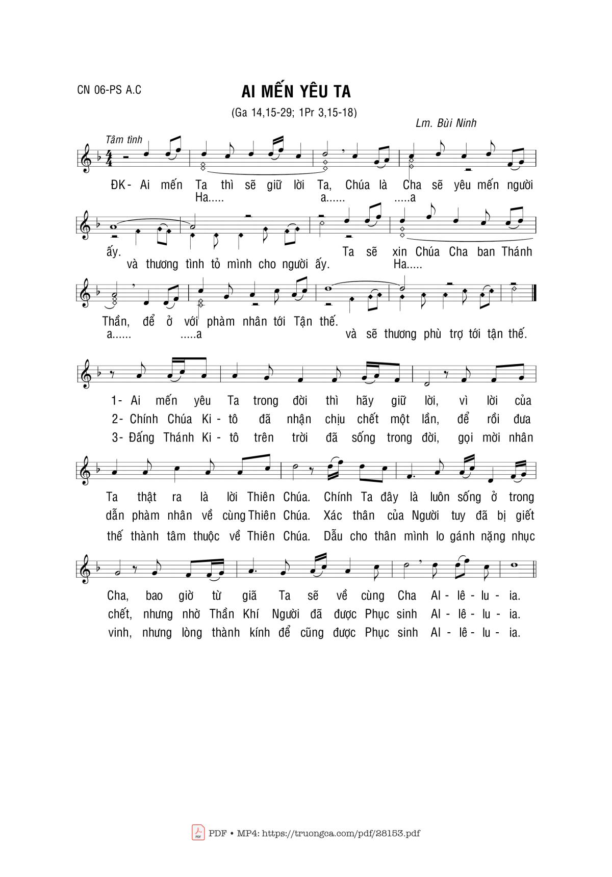 Bùi Ninh Ai mến Ta thì sẽ giữ lời Ta Chúa là Cha sẽ yêu mến người ấy [PDF] [Sheet] [Lyrics] [Mp4/Midi]