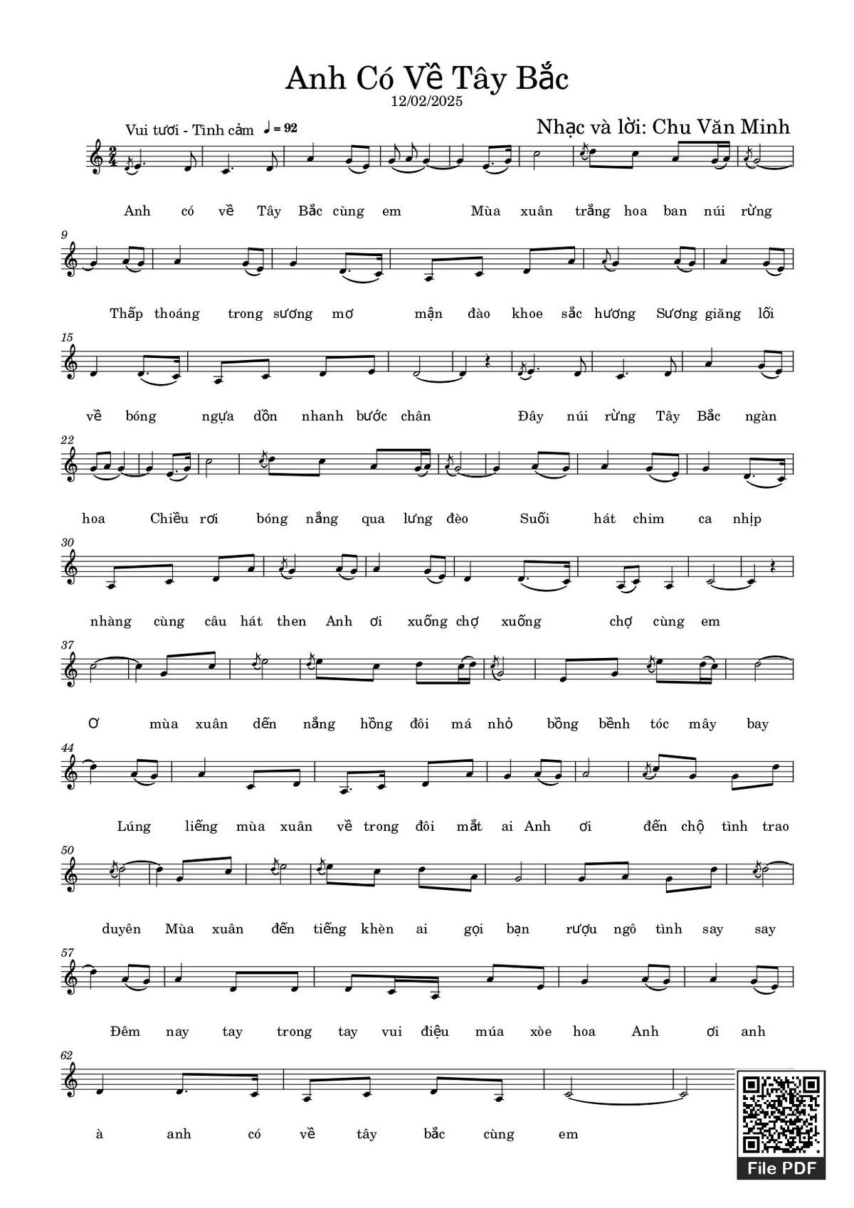 Chu Văn Minh Anh có về Tây Bắc cùng em Mùa Xuân trắng hoa ban núi rừng [PDF] [Sheet] [Lyrics] [Mp4/Midi]
