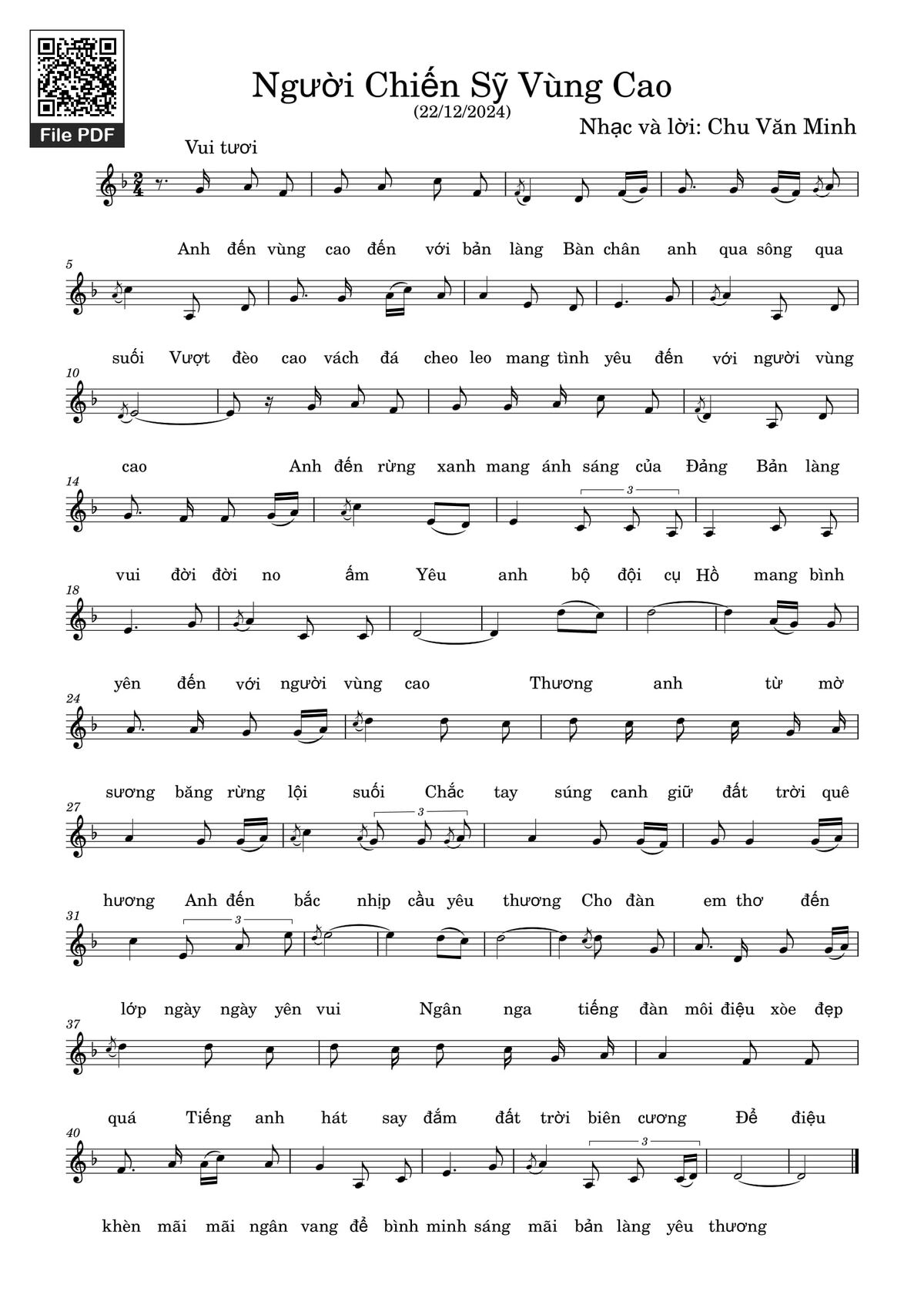 Chu Văn Minh Anh đến vùng cao đến với bản làng Bàn chân anh qua sông qua suối [PDF] [Sheet] [Lyrics] [Mp4/Midi]