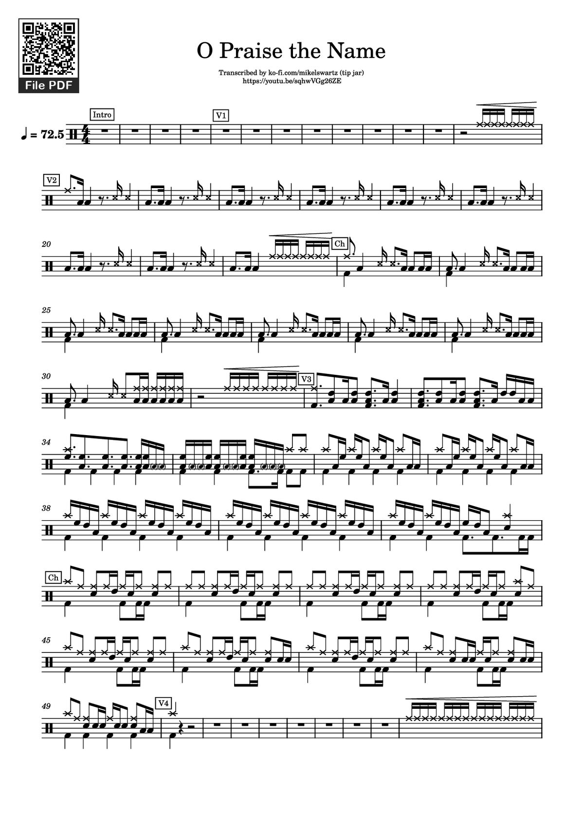 Download and print in PDF or MIDI free sheet music of o praise the name - Hillsong Worship for O Praise The Name by Hillsong Worship arranged by mikelswartz for Drum group (Solo)