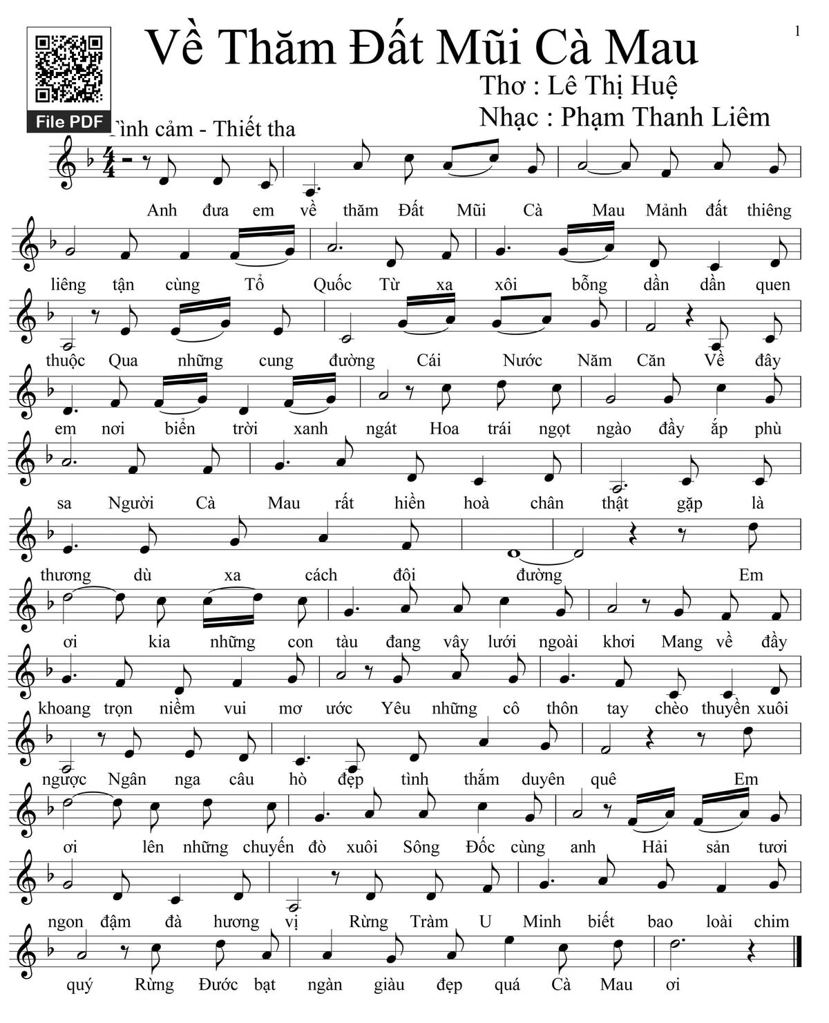 Phạm Thanh Liêm Anh đưa em về thăm Đất Mũi Cà Mau Mảnh đất thiêng liêng tận cùng Tổ Quốc [PDF] [Sheet] [Lyrics] [Mp4/Midi]