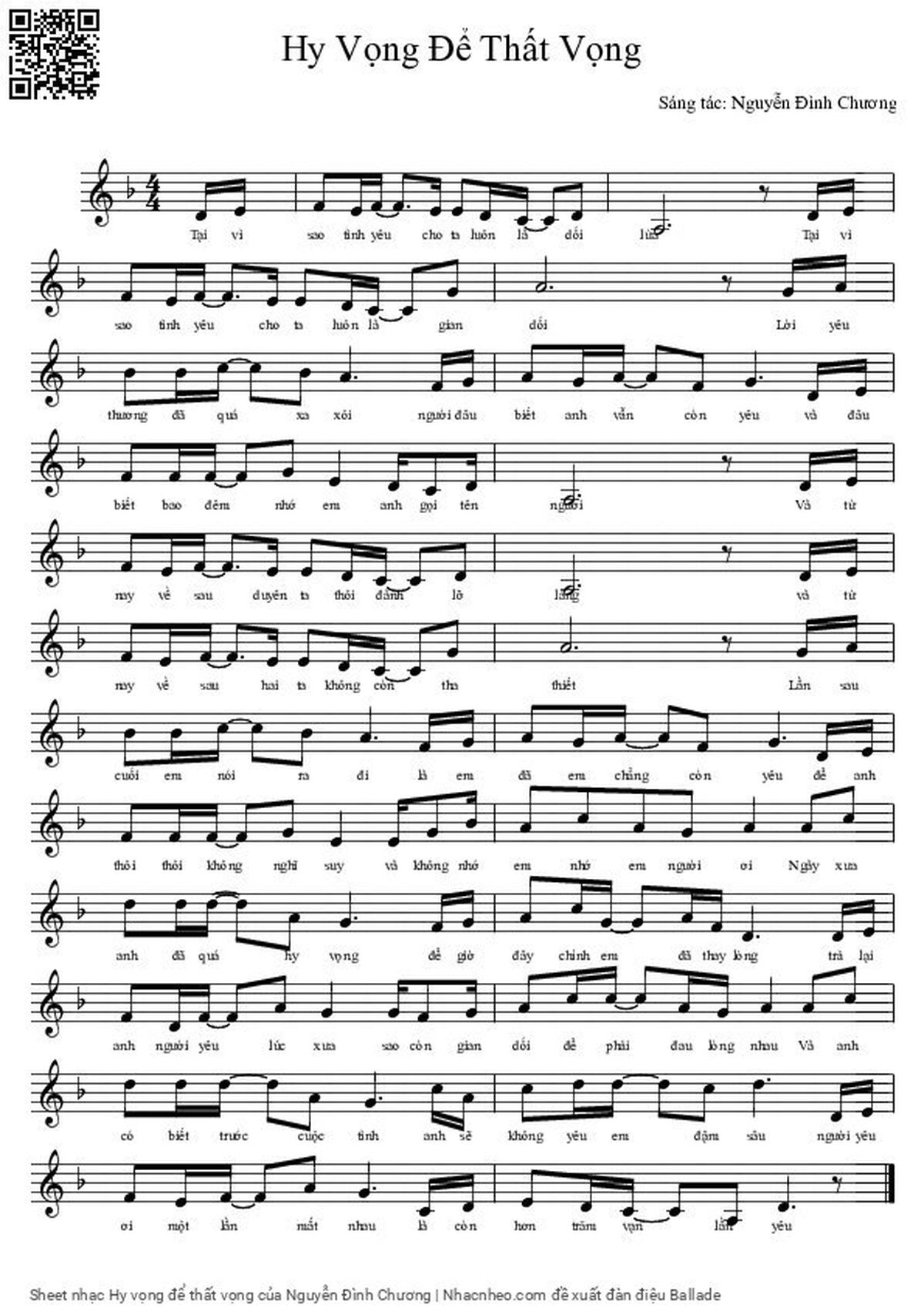 Nguyễn Đình Chương Tại vì sao tình yêu cho ta luôn là dối lừa [PDF] [Sheet] [Lyrics] [Mp4/Midi]