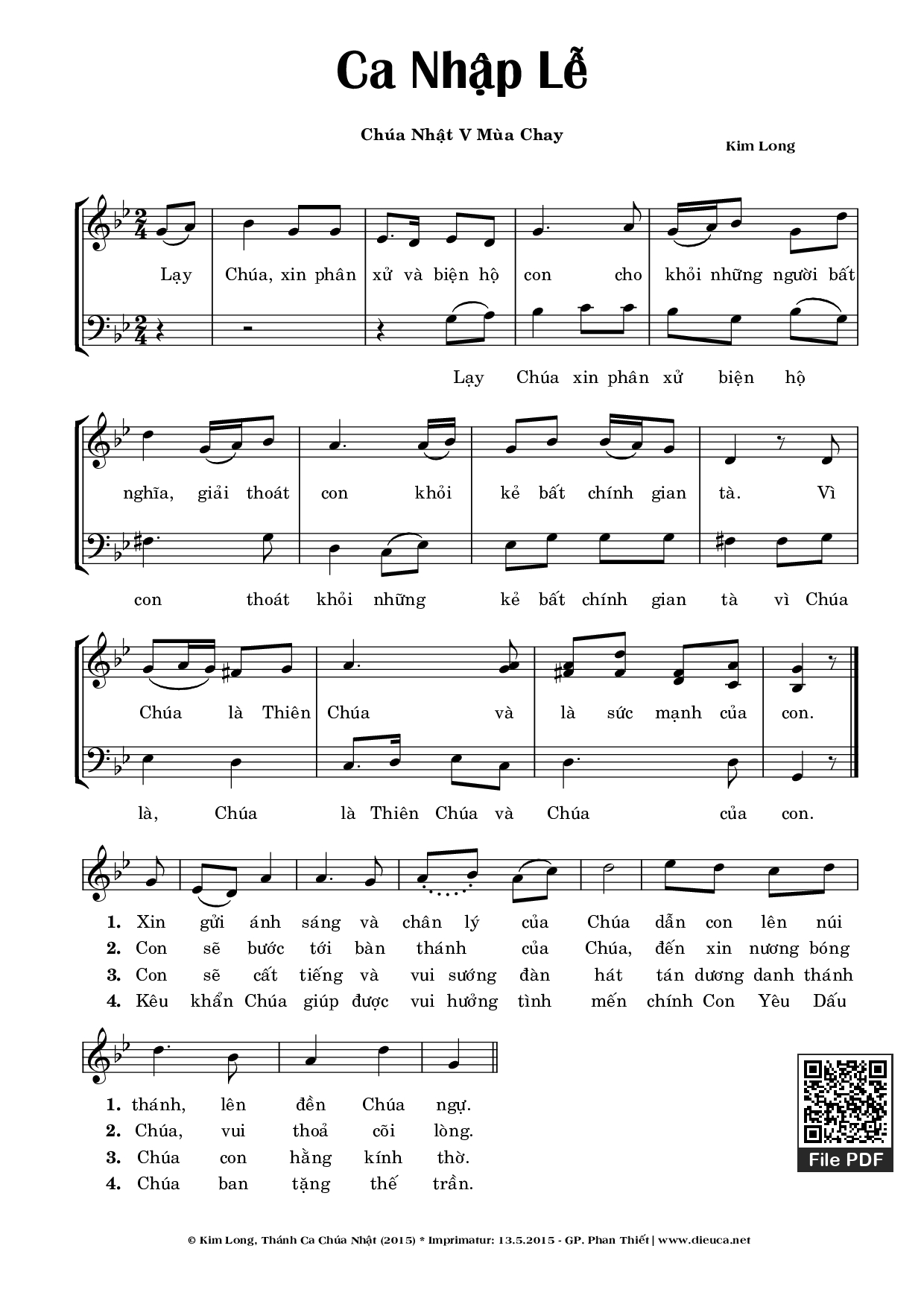 The first sentence: Lạy Chúa xin phân xử và biện hộ con cho khỏi những người bất nghĩa