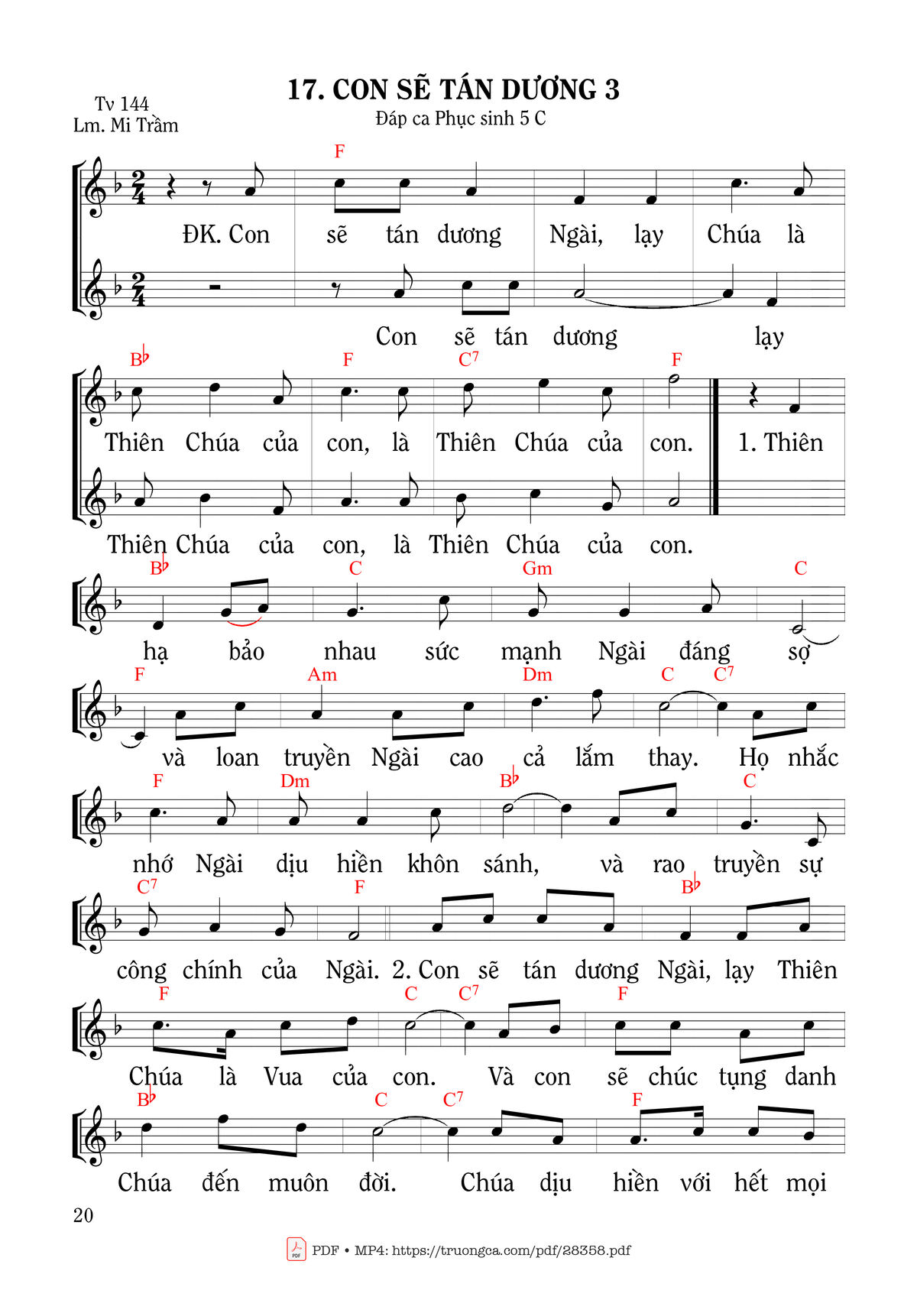 Mi Trầm Con sẽ tán dương Ngài lạy Chúa là Thiên Chúa của con [PDF] [Sheet] [Lyrics] [Mp4/Midi]