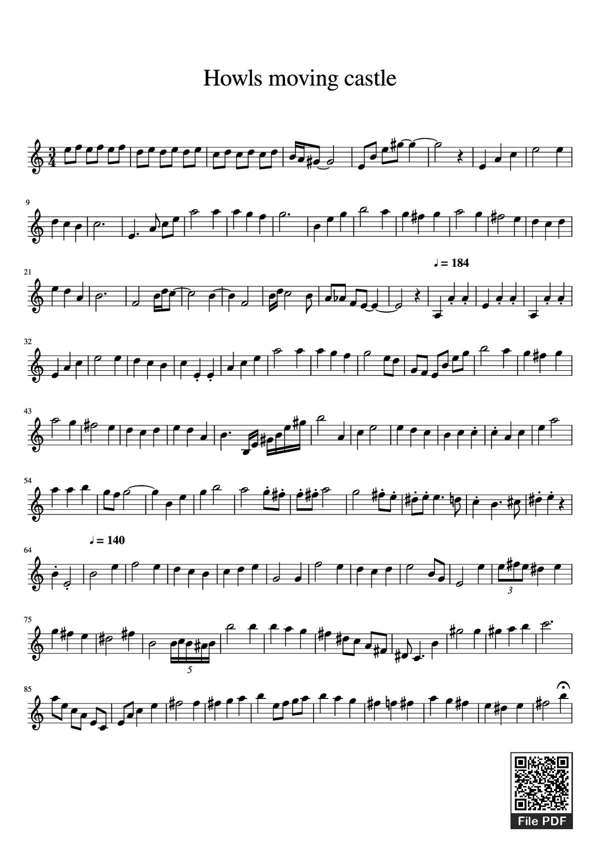 Download and print in PDF or MIDI free sheet music of Howl's Moving Castle - Joe Hisaishi for Howl's Moving Castle by Joe Hisaishi arranged by MeiShu for Clarinet in b-flat