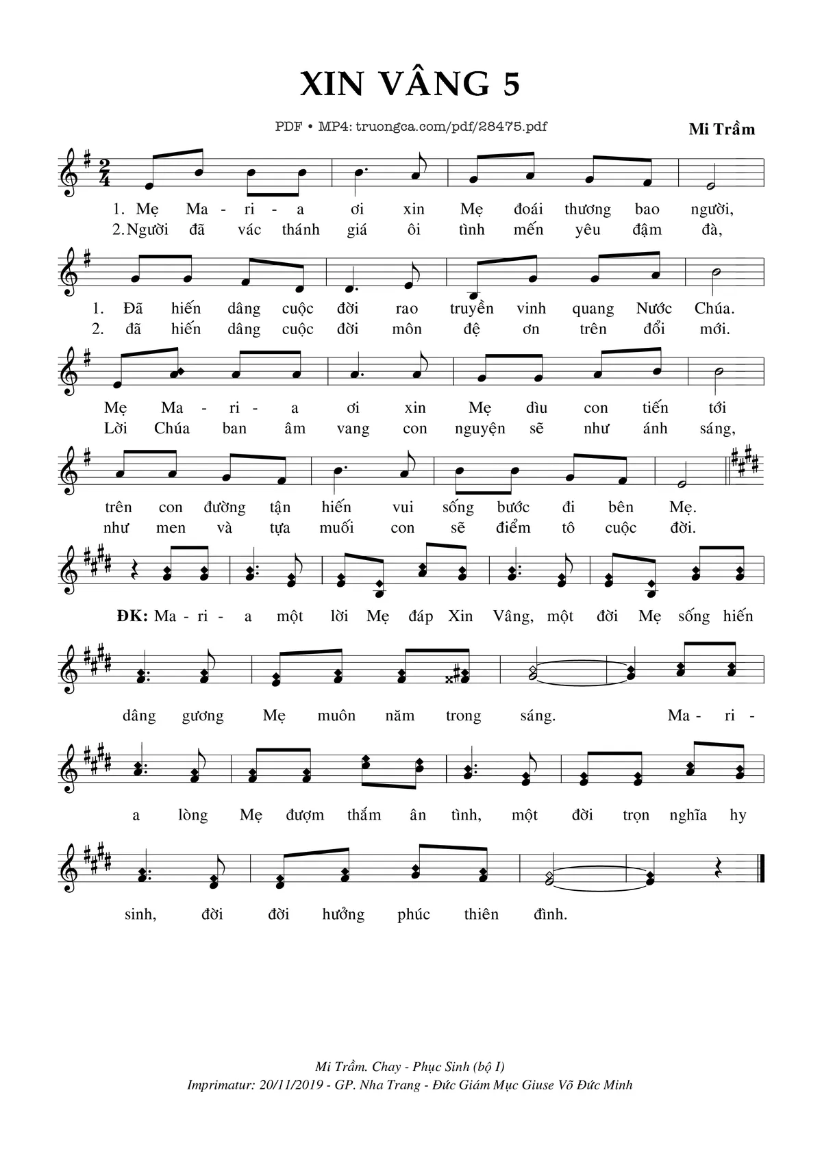 Mi Trầm Mẹ Maria ơi xin Mẹ đoái thương bao người [PDF] [Sheet] [Lyrics] [Mp4/Midi]