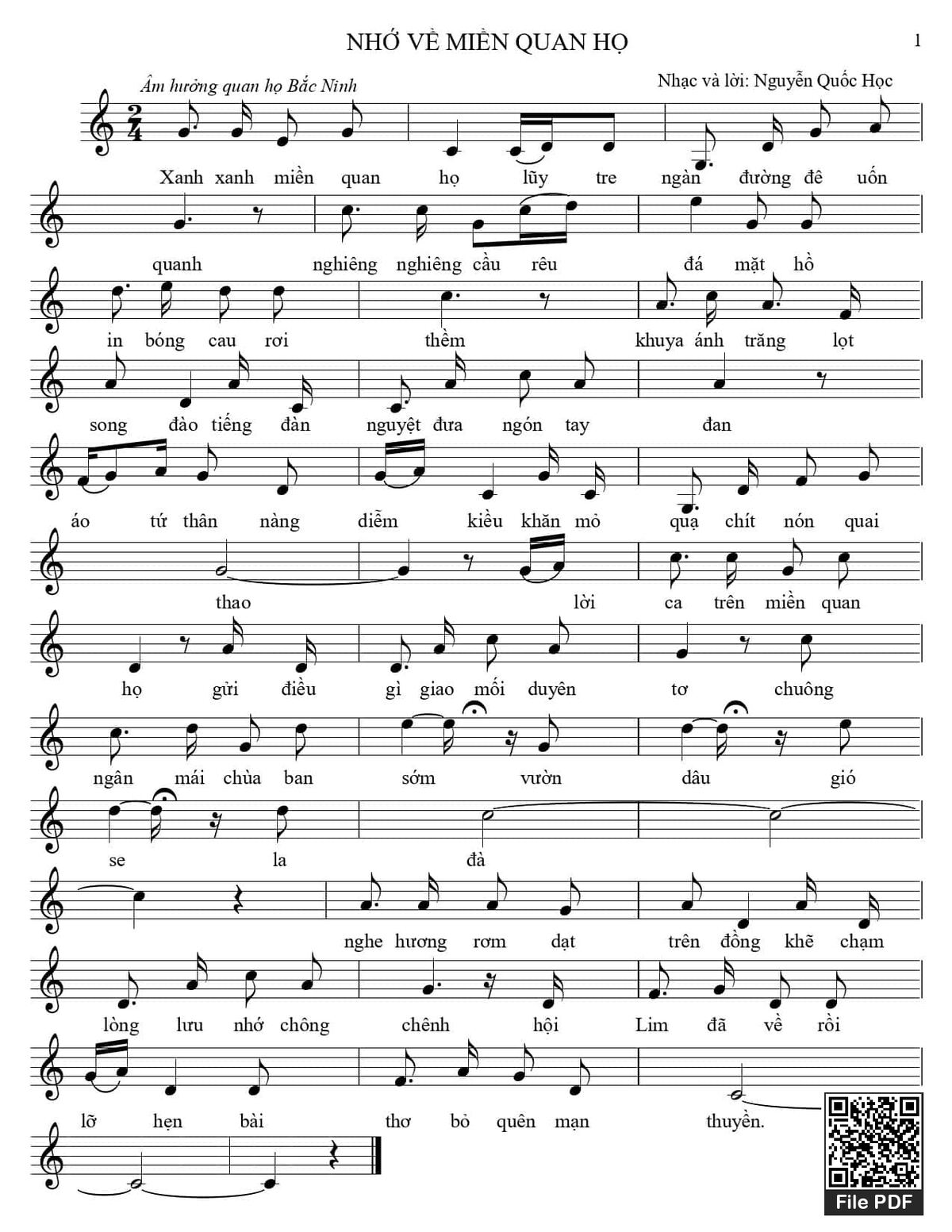 Nguyễn Quốc Học Xanh xanh miền quan họ Lũy tre ngàn đường đê uốn quanh [PDF] [Sheet] [Lyrics] [Mp4/Midi]