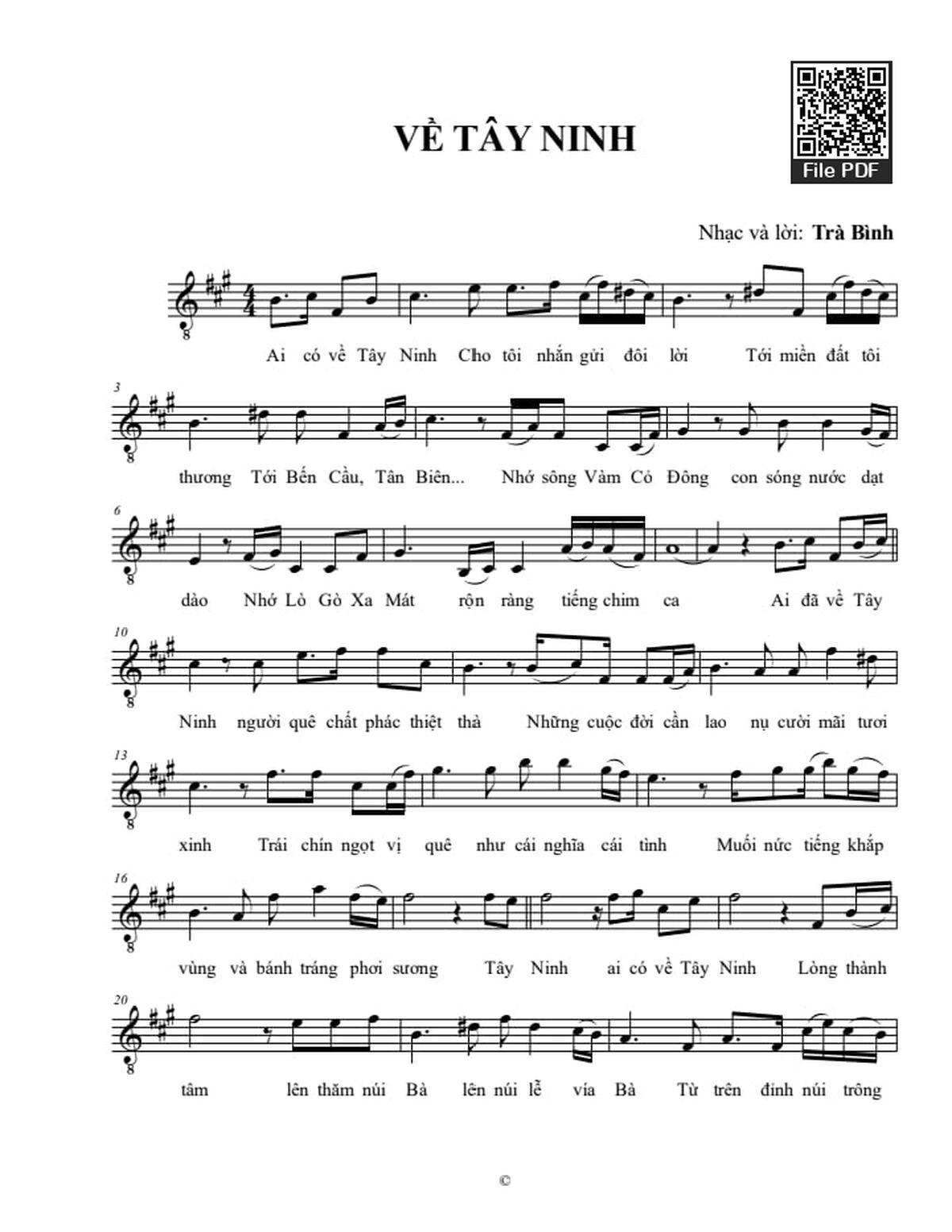 Trà Bình Ai có về Tây Ninh cho tôi nhắn gửi đôi lời [PDF] [Sheet] [Lyrics] [Mp4/Midi]