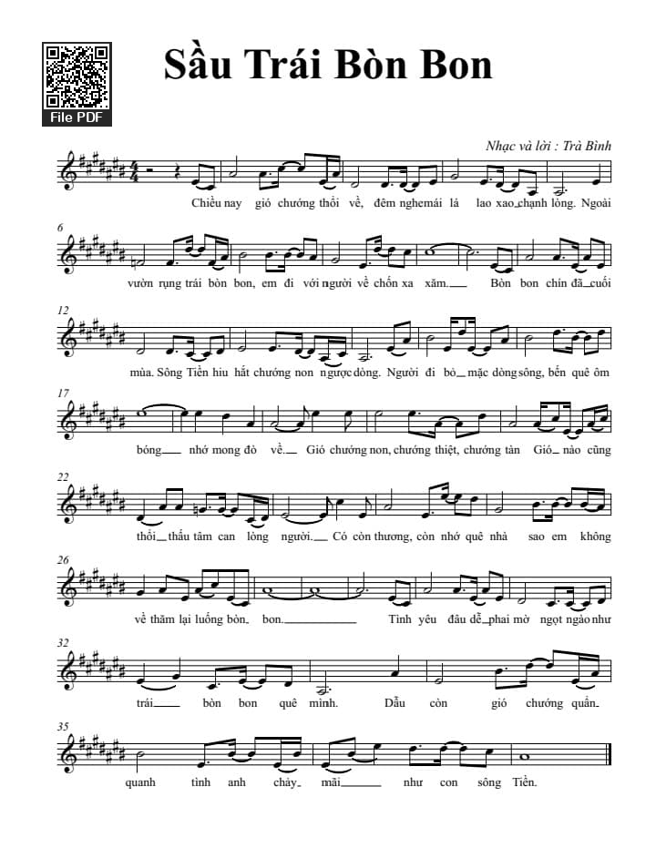 Trà Bình Chiều nay gió chướng thổi về Đêm nghe mái lá lao xao chạnh lòng [PDF] [Sheet] [Lyrics] [Mp4/Midi]