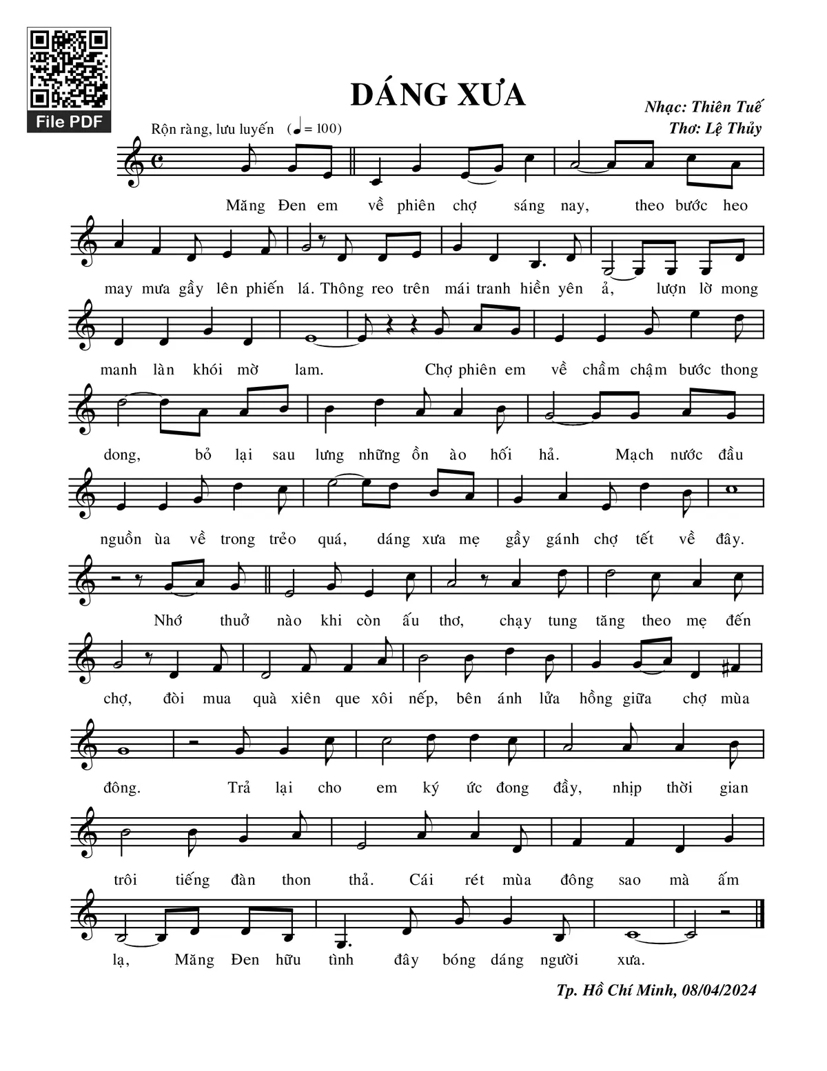 Sheet PDF with the same name Dáng xưa: